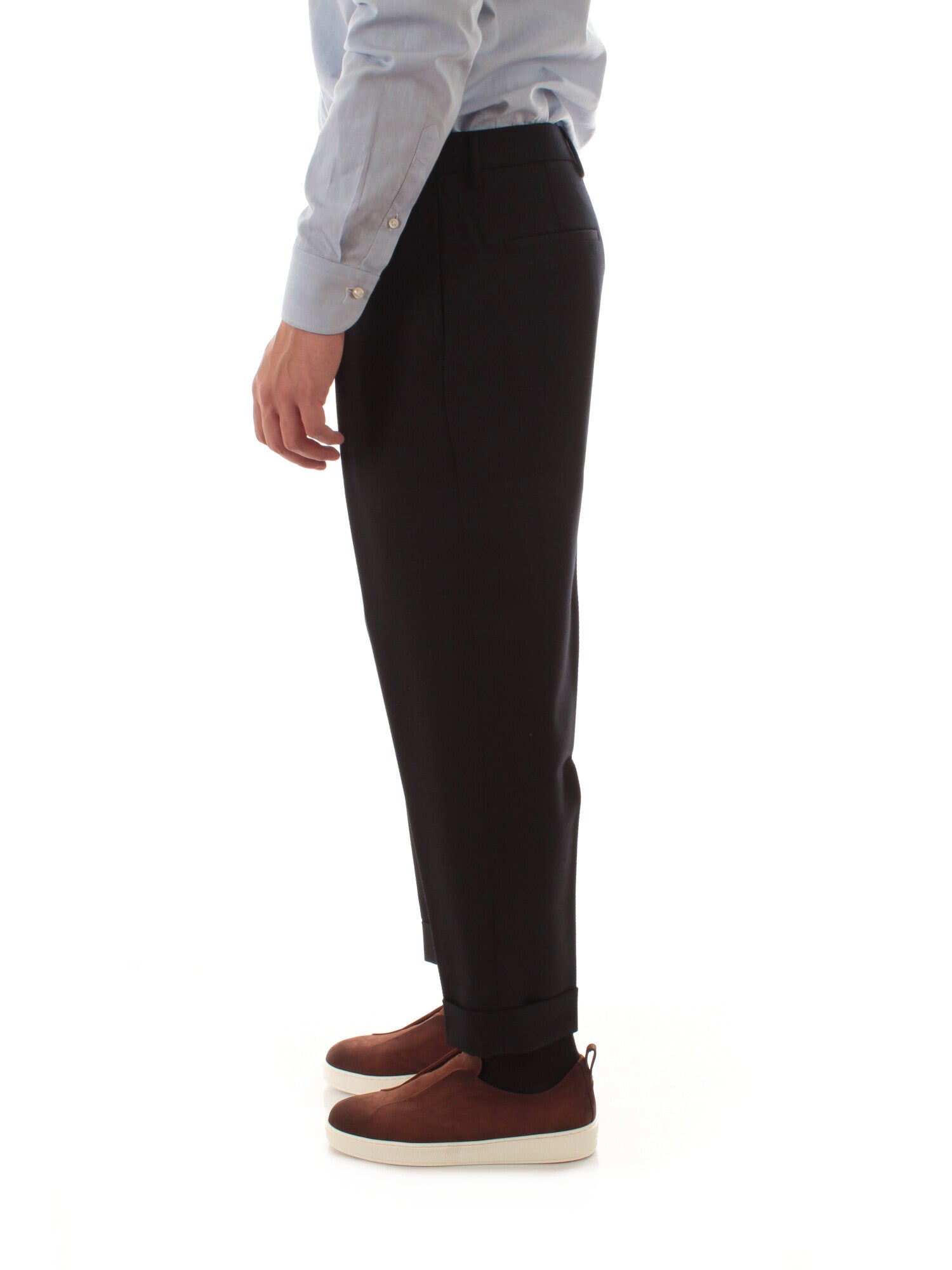 Pantalone con tasche a filo e una pence. Fondo con risvolto. Altezza modello: 185 cm. Taglia indossata: 48. 100% lana vergine