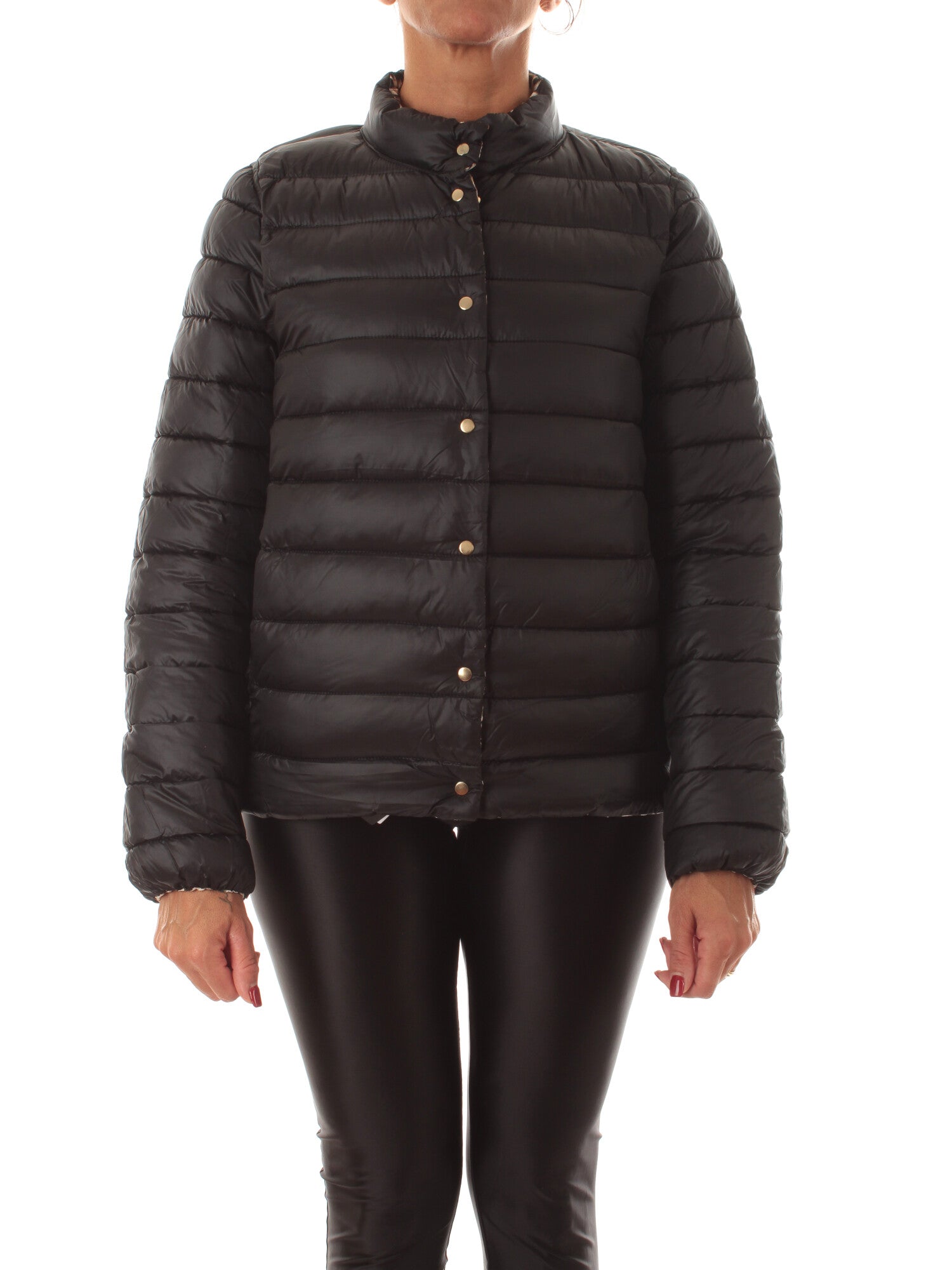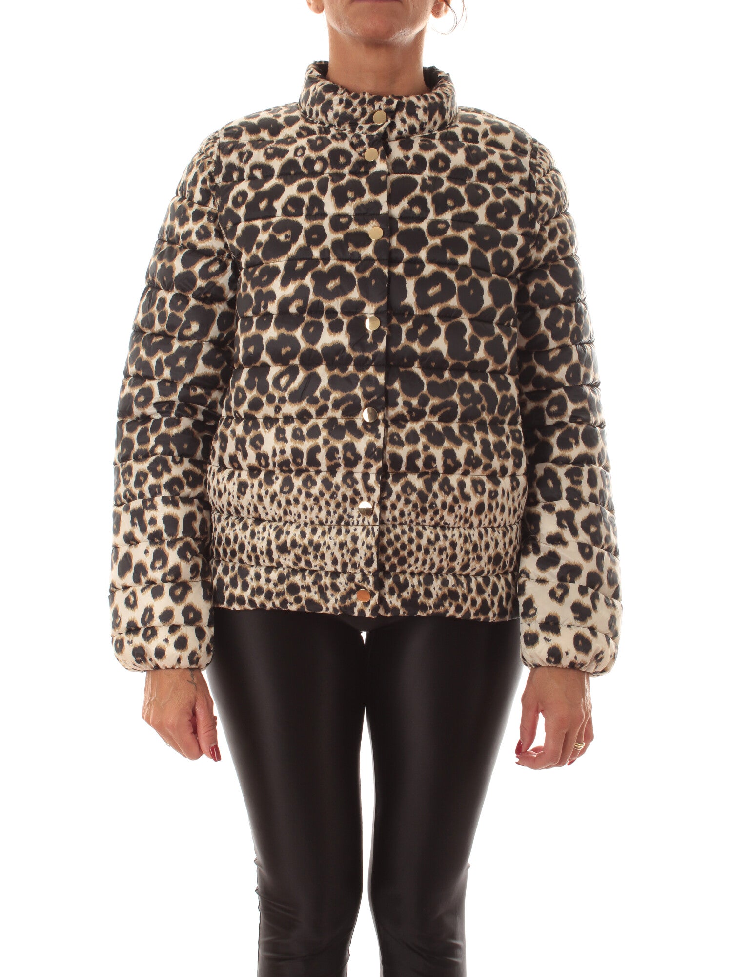 Imbottito in tessuto antigoccia con un lato a disegno animalier e l'altro a tinta unita. Tasche a filo e chiusura con bottoni a pressione in metallo. Altezza modella: 172 cm. Taglia indossata: 40. 100% poliestere