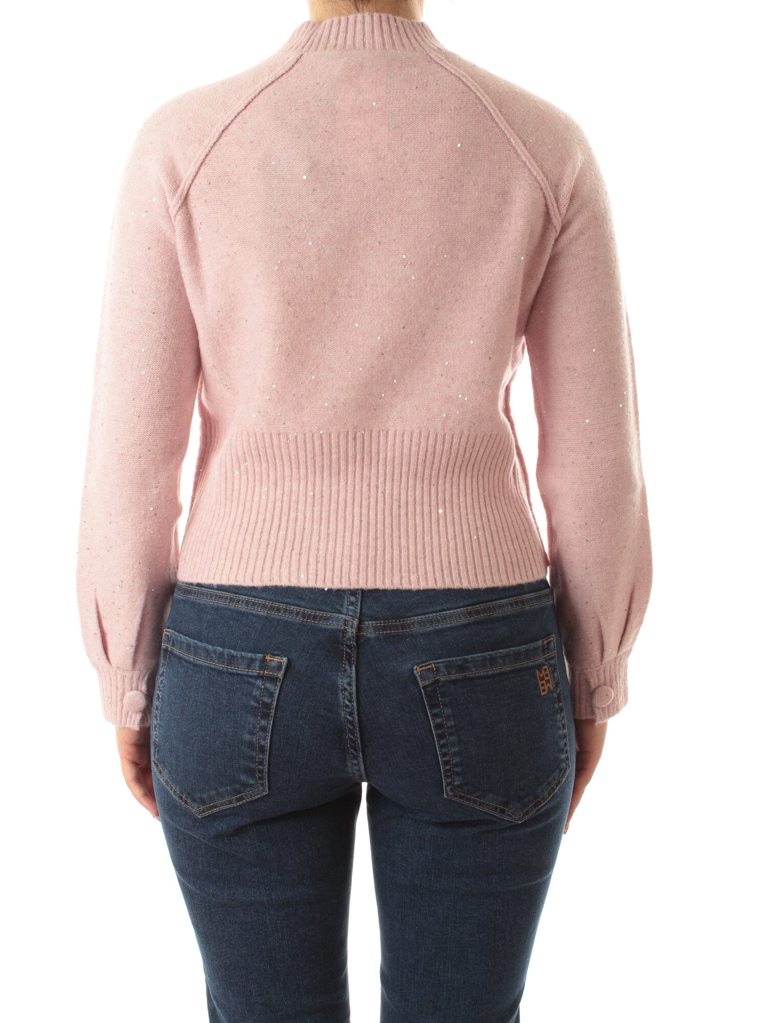 Maglia in filato comfy con paillette. Fit cropped. Collo a cratere con manica raglan. Motivo di cuciture esterne su spalla e fianchi. Bordo alto al fondo lavorato a coste, con bottone al polso. Altezza modella: 172 cm. Taglia indossata: S. 72% poliestere, 20% acrilica, 6% lana, 2% elastan