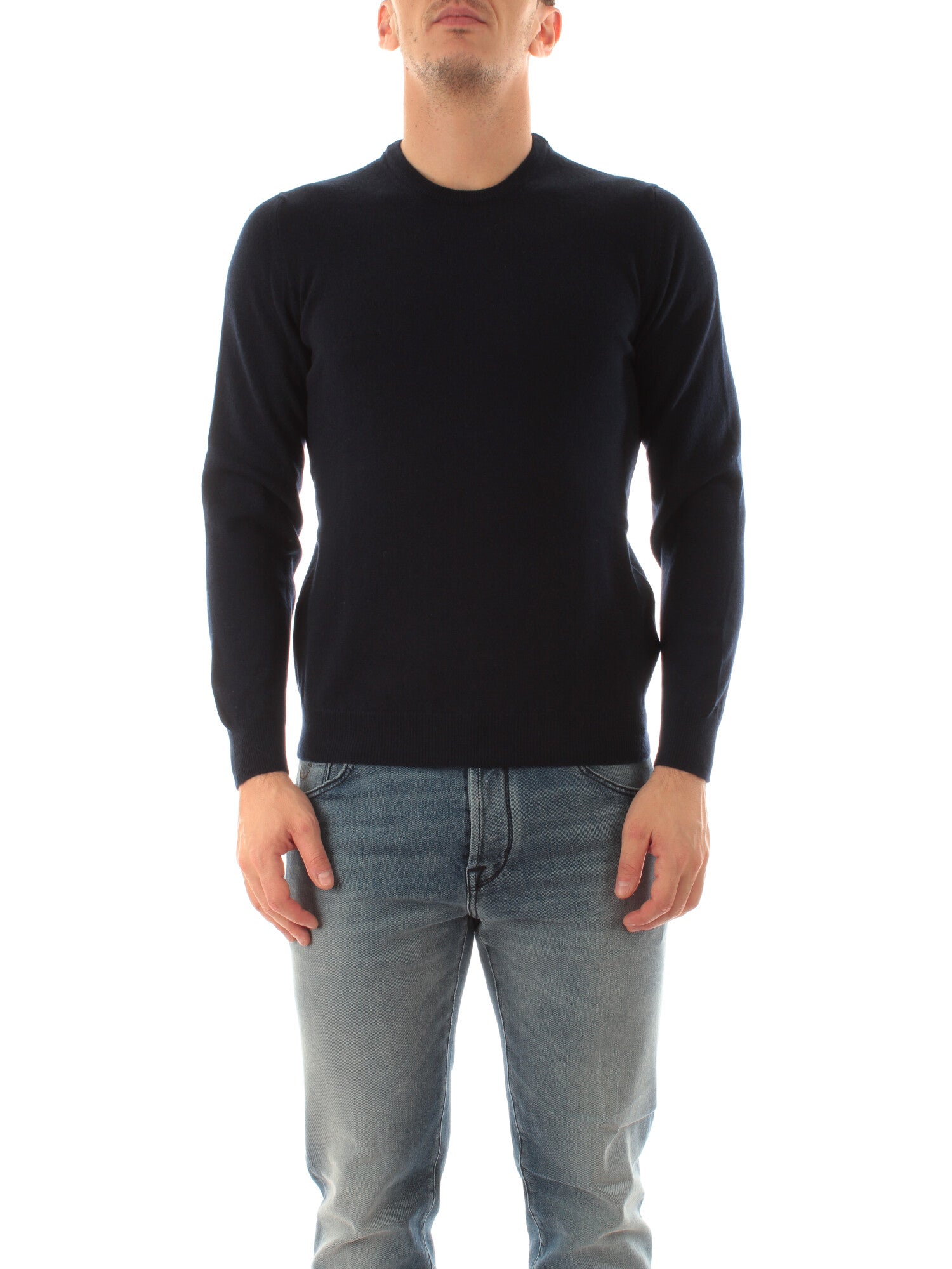Maglia girocollo in puro cashmere. Collo, polsi e fondo a costine. Altezza modello: 185 cm. Taglia indossata: 48. 100% Cashmere.