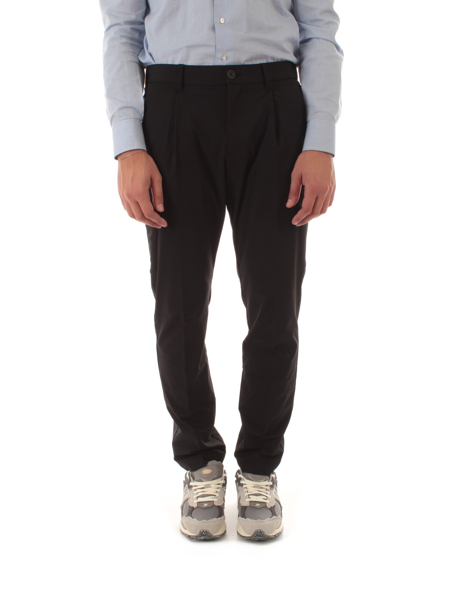 Pantaloni cargo in nylon leggero che si caratterizza per essere bi-stretch e quindi molto confortevole. Elastico con coulisse in vita. Pinces. Tasche sui fianchi. Tasca con patta sul retro. Tasche cargo. Chiusura con zip coperta e bottone. Altezza modello: 185 cm. Taglia indossata: M.