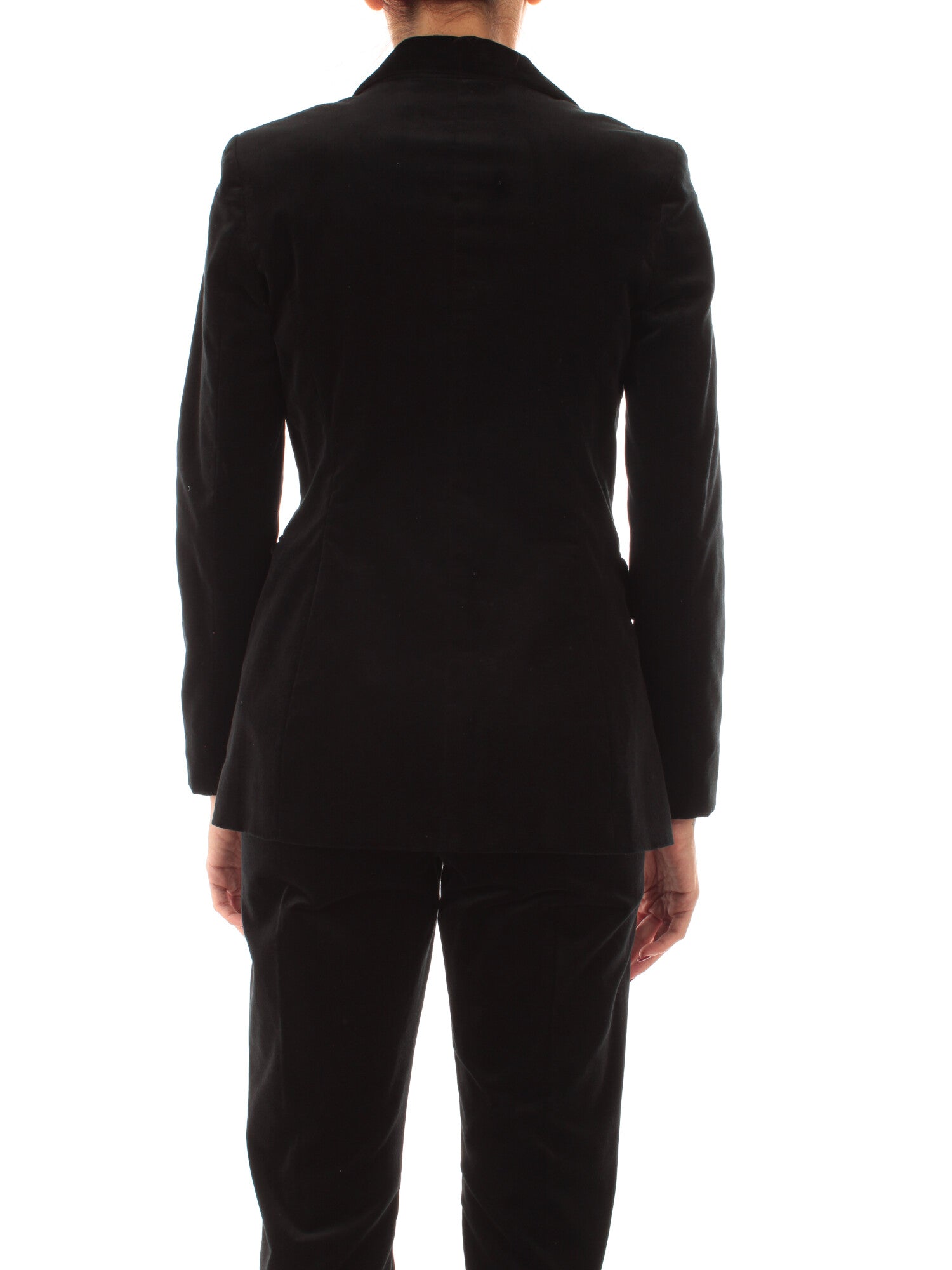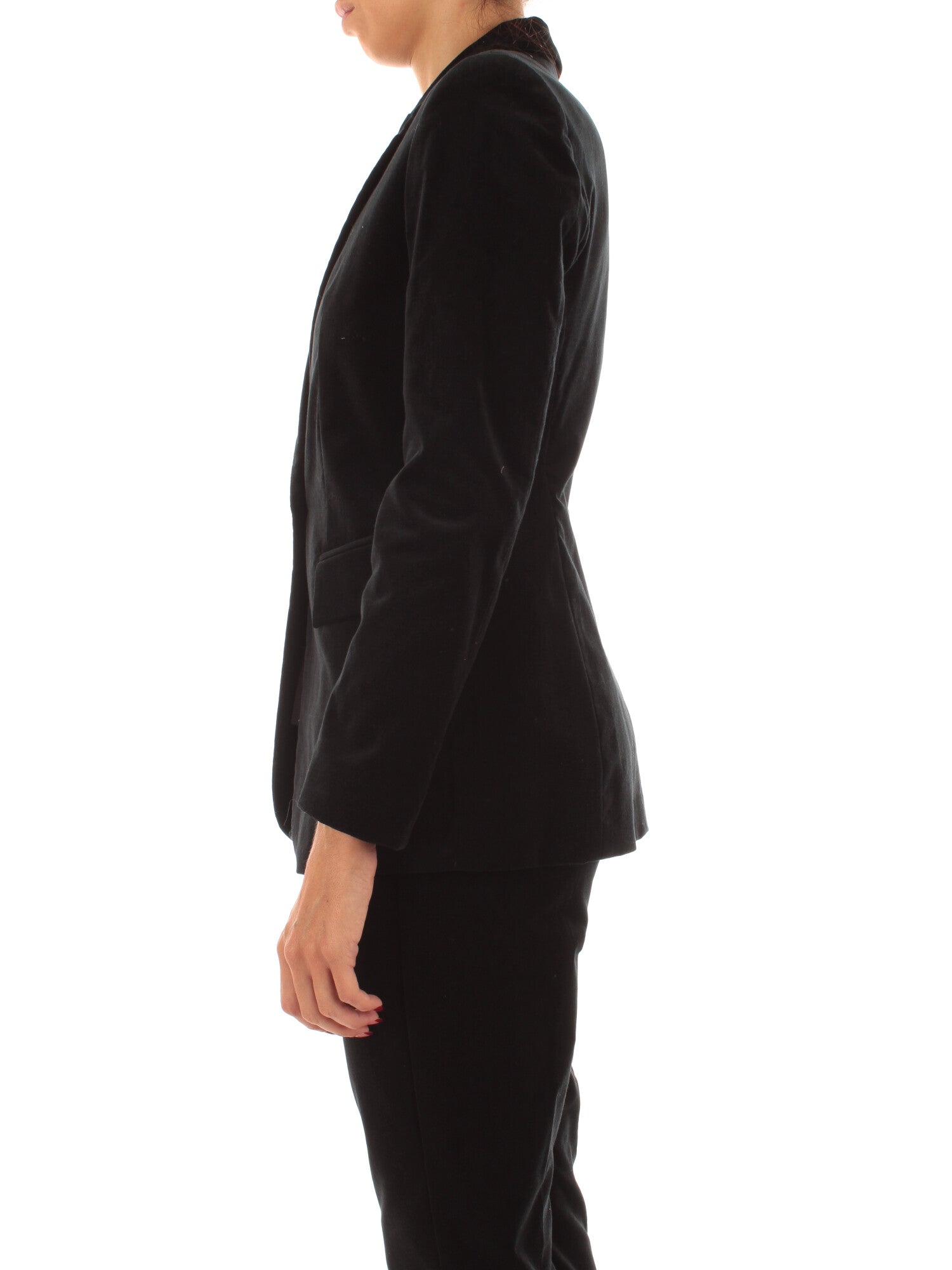 Blazer in velluto misto cotone stretch. Linea sfiancata. Collo a rever, maniche lunghe. Chiusura con bottoni, tasche a patta. Capo foderato. Fit aderente. Altezza modella: 170 cm. Taglia indossata: 38. 74% cotone, 25% viscosa, 1% elastan; fodera 64% acetato, 36% poliestere