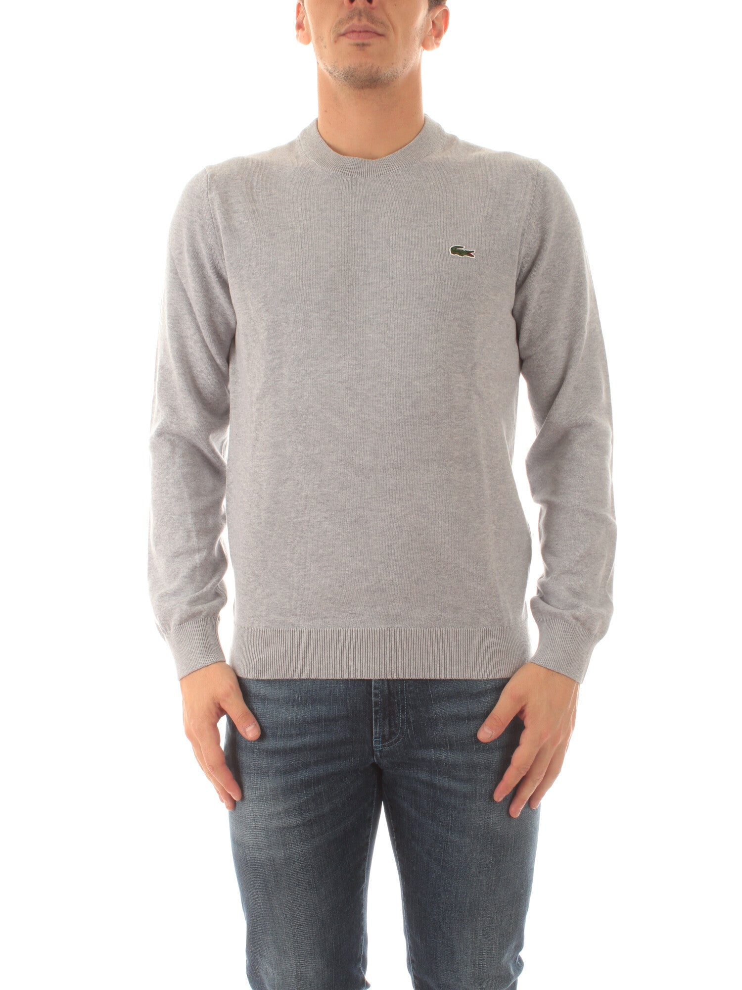 Lacoste pullover da uomo con collo rotondo in cotone organico grigio chine