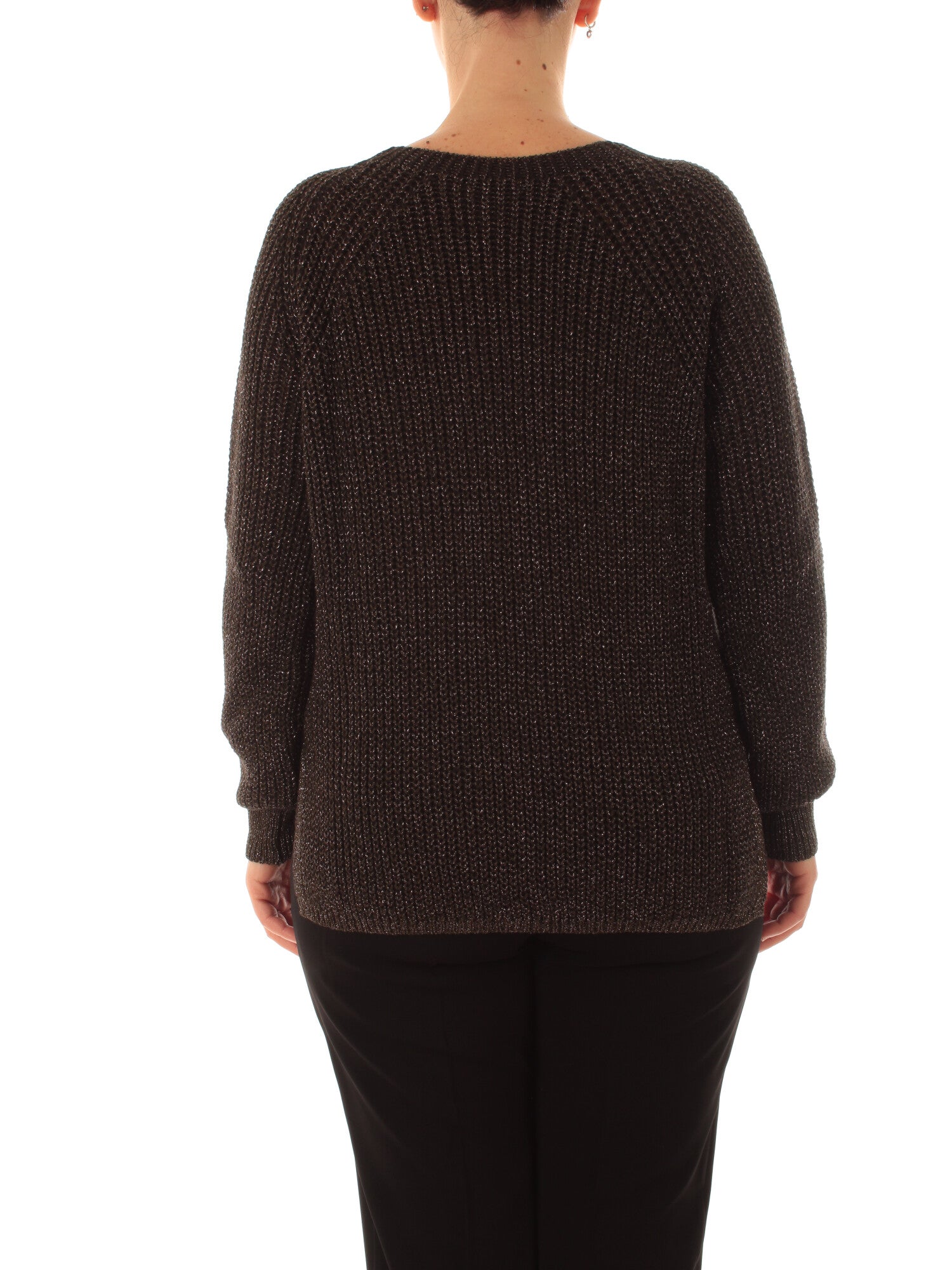 Maglia con lurex, modello girocollo con spacchi laterali sul fondo. Altezza modella: 170 cm. Taglia indossata: S/M. 47% viscosa, 36% acrilico, 10% poliestere, 5% lana, 2% alpaca