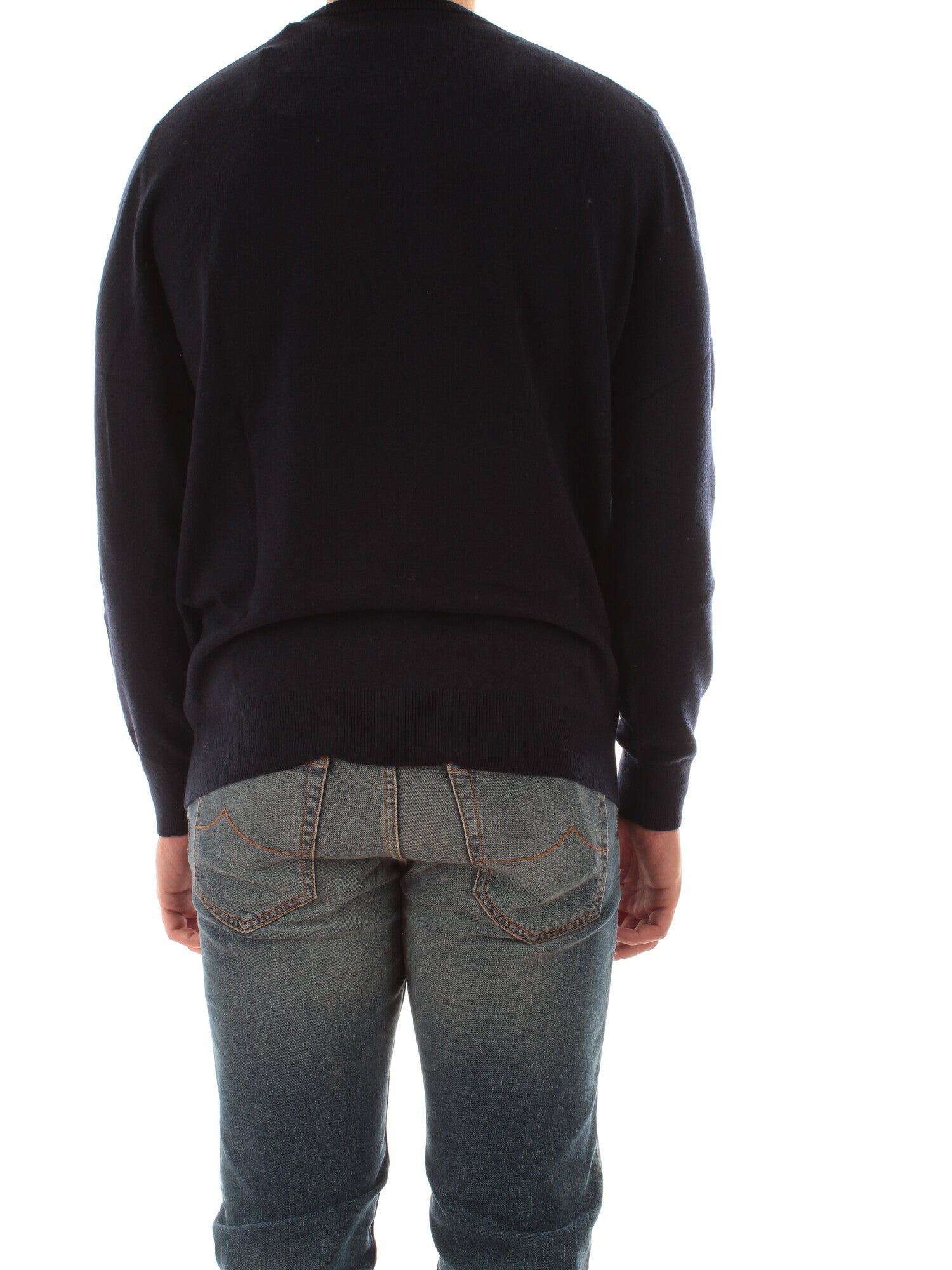 Maglia misto cashmere con girocollo, ricamo a contrasto, orlo a costine e maniche lunghe con polsini a coste. Altezza modello: 185 cm. Taglia indossata: M. 35% Lana, 30% Viscosa, 20% Cashmere, 10% Poliammide