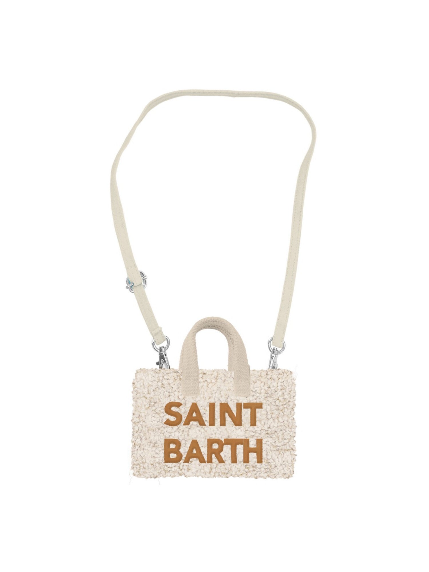 Micro borsa porta cellulare. Tessuto teddy, ricamo logo San Barth e tracolla staccabile. Chiusura magnetica. Dimensioni: 15 x 10 x 3,5 cm. 100% Poliestere.