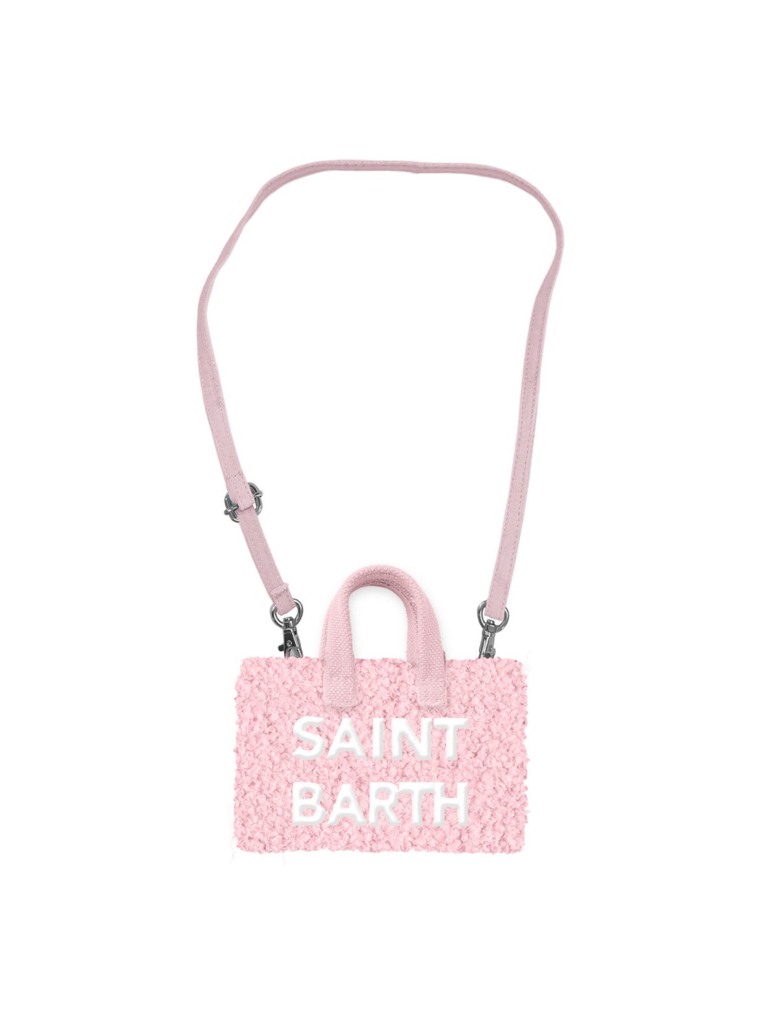 Micro borsa porta cellulare. Tessuto teddy, ricamo logo San Barth e tracolla staccabile. Chiusura magnetica. Dimensioni: 15 x 10 x 3,5 cm. 100% Poliestere.