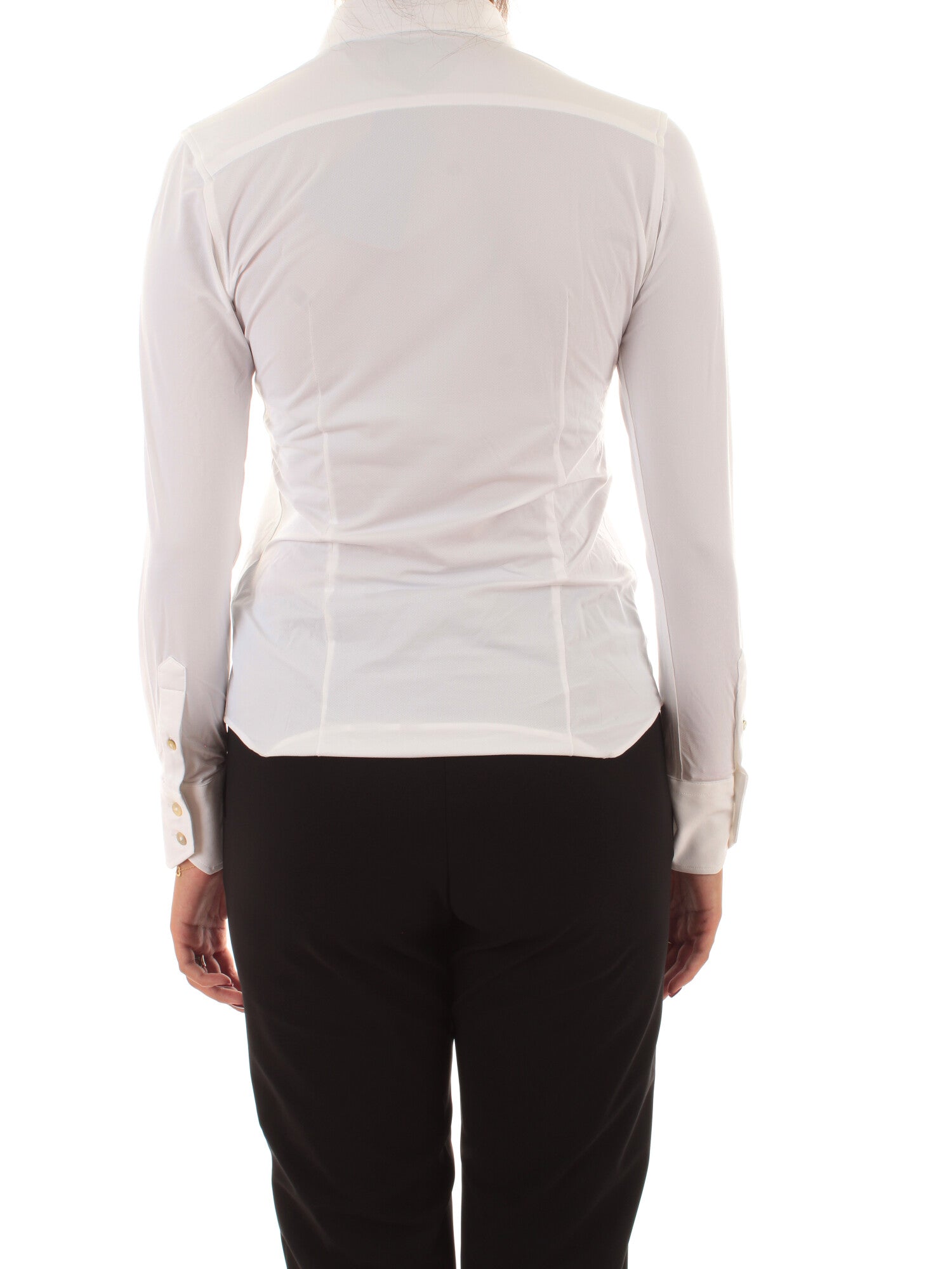 La camicia sartoriale dal taglio maschile è reinterpretata con raffinata modernità nel pregiato tessuto Oxford stretch. La sua mano morbida e leggera accarezza la pelle, offrendo una sensazione di comfort assoluto e naturale eleganza. La silhouette, nitida e contemporanea, è valorizzata dalle pinces frontali che disegnano con garbo la linea del busto. Il colletto essenziale e i polsini di media altezza evocano una sobrietà studiata, mentre i bottoni in madreperla aggiungono un dettaglio di sottile esclusività. Altezza modella: 170 cm. Taglia indossata: 38. 86% poliammide, 14% elastan
