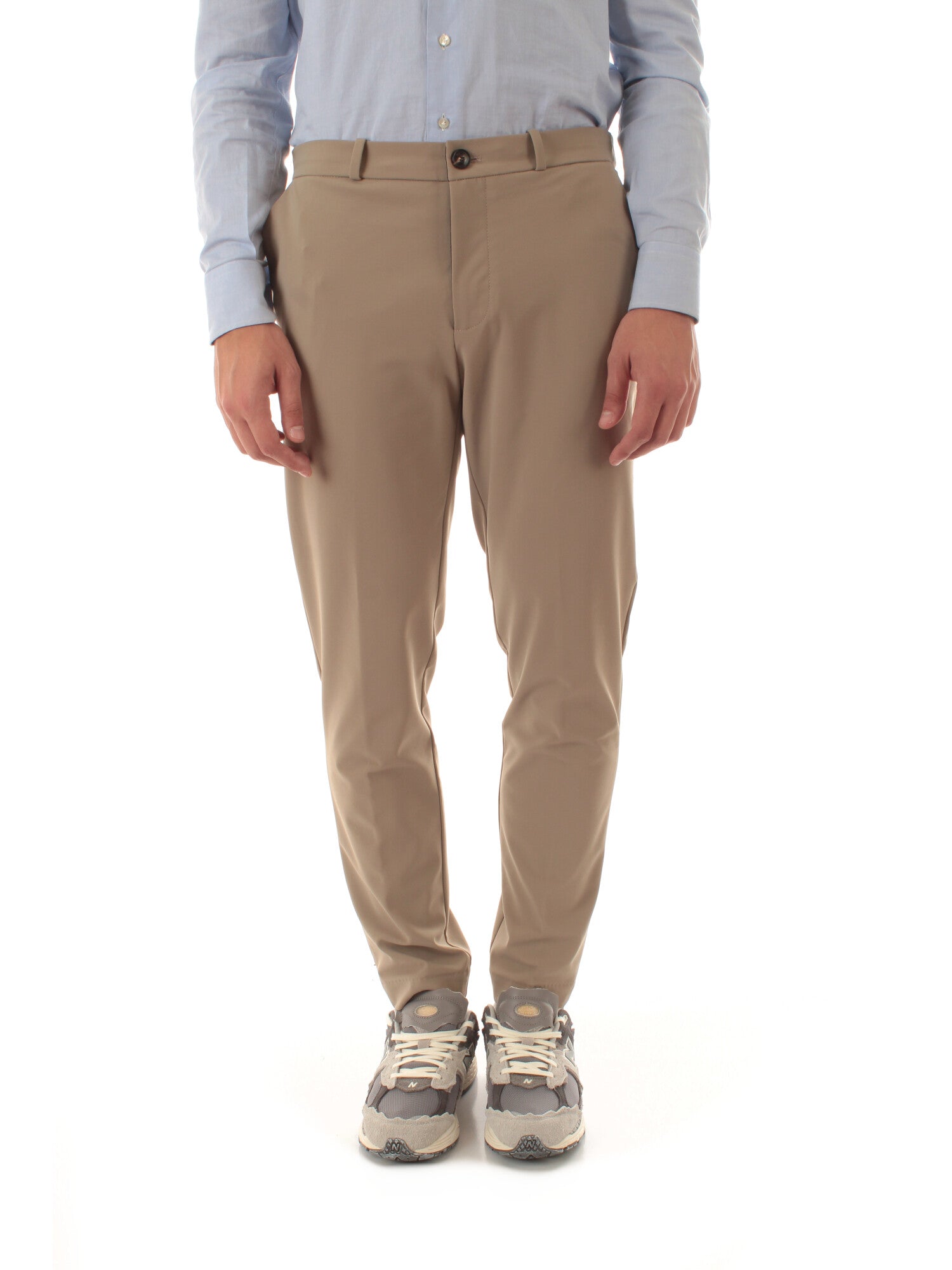 Il chino invernale dal fit regolare è realizzato in esclusivo tessuto stretch SURFLEX® antipiega, no stiro e caratterizzato da una mano straordinariamente liscia. La finitura super opaca esalta la palette di tonalità sobrie e raffinate, perfette per accompagnare con stile la stagione fredda. Il modello a vita media è arricchito da dettagli sartoriali come la cintura con passanti, chiusa da un bottone in corno naturale. È dotata di coulisse interna ed elastico per un comfort personalizzato. L'interno svela la stampa dell'iconico Monogram Razzle Dazzle in nero. La zip frontale è nascosta dalla pattina, mentre le tasche alla francese - con pratico tiretto elastico sul lato destro - si affiancano alle posteriori a filo. Altezza modello: 185 cm. Taglia indossata: 48. 80% poliammide, 20% elastan