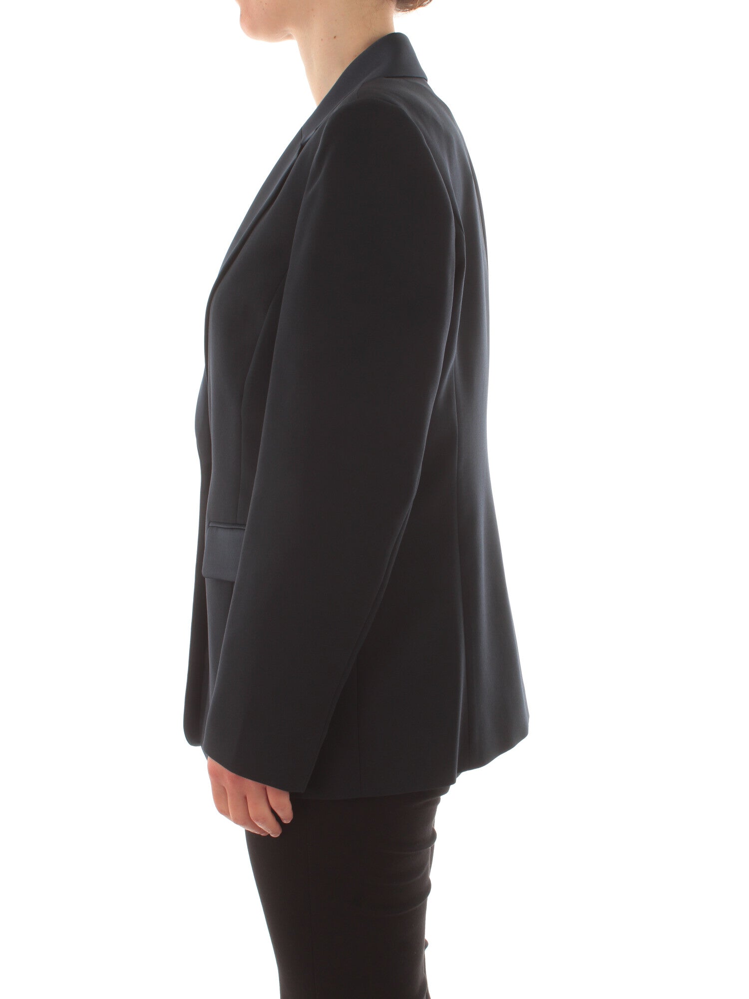 Giacca blazer in crêpe envers satin opaco, con dettagli in tessuto lucido. Tagli fianchetto davanti e dietro. Dettagli in tessuto lucido. Collo con revers. Chiusura con bottoni ricoperti. Maniche lunghe. Tasche con doppio filetto e patta. Foderata. Altezza modella: 170 cm. Taglia indossata: 17. 100% poliestere