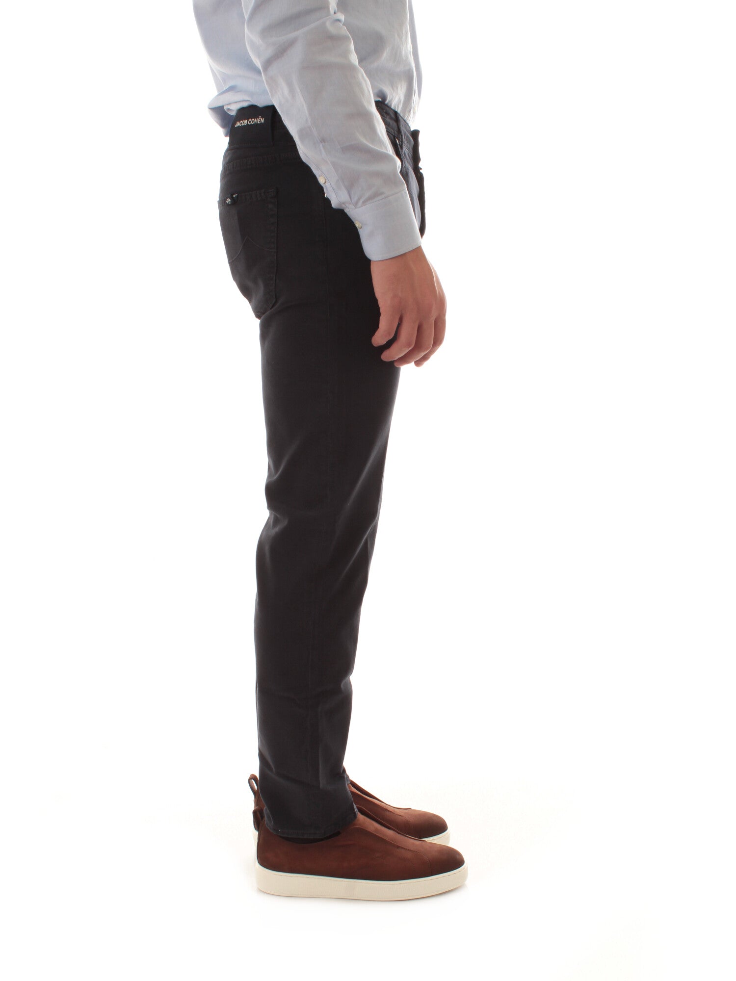 Jeans scott cropped carrot slim fit. Modello a cinque tasche con logo ricamato sul taschino. Passanti al punto vita. Chiusura con bottoni. Salpa in cavallino con logo laserato. Include bandana con stampa di collezione. Profumati con l’esclusiva fragranza Jacob Cohën. Altezza modello: 185 cm. Taglia indossata: 34. 92% cotone, 8% elastan