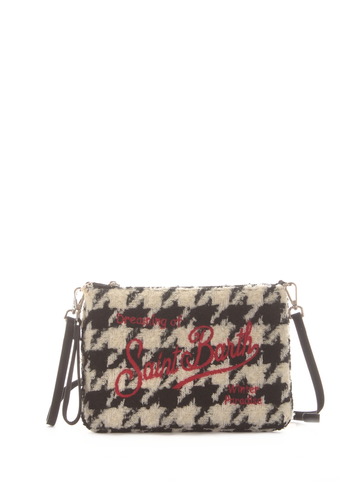 Pochette con motivo Pied de Poule e logo St.Barth su entrambi i lati. Chiusura con zip. Manico singolo e tracolla effetto camoscio staccabili. 20 x 28 cm. 50% poliestere, 50% lana; Fodera: 100% Poliestere