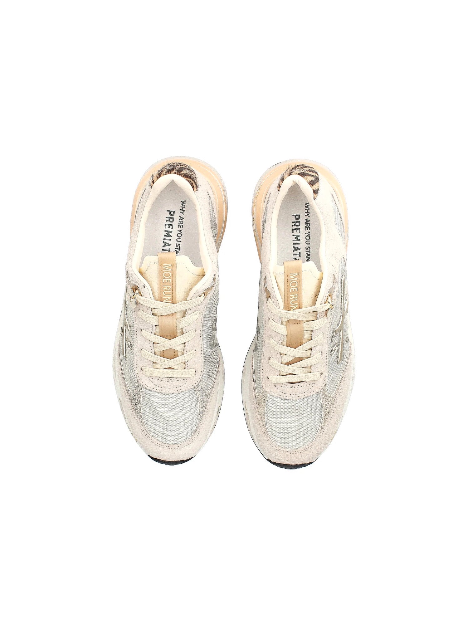 Sneakers Moe run dal design sportivo in pelle con logo sul laterale esterno, scritta PREMIATA sul laterale interno e nome del modello sull'etichetta. Suola in gomma alta 4,5 cm. Suola: 70% PEBAX 20% GOMMA 10% TPU. Tomaia: 50% ny 15% pu 5% ea 25% calf leather 5% hairy calf. Fodera: 100% 86% goat leather 14% calf leather