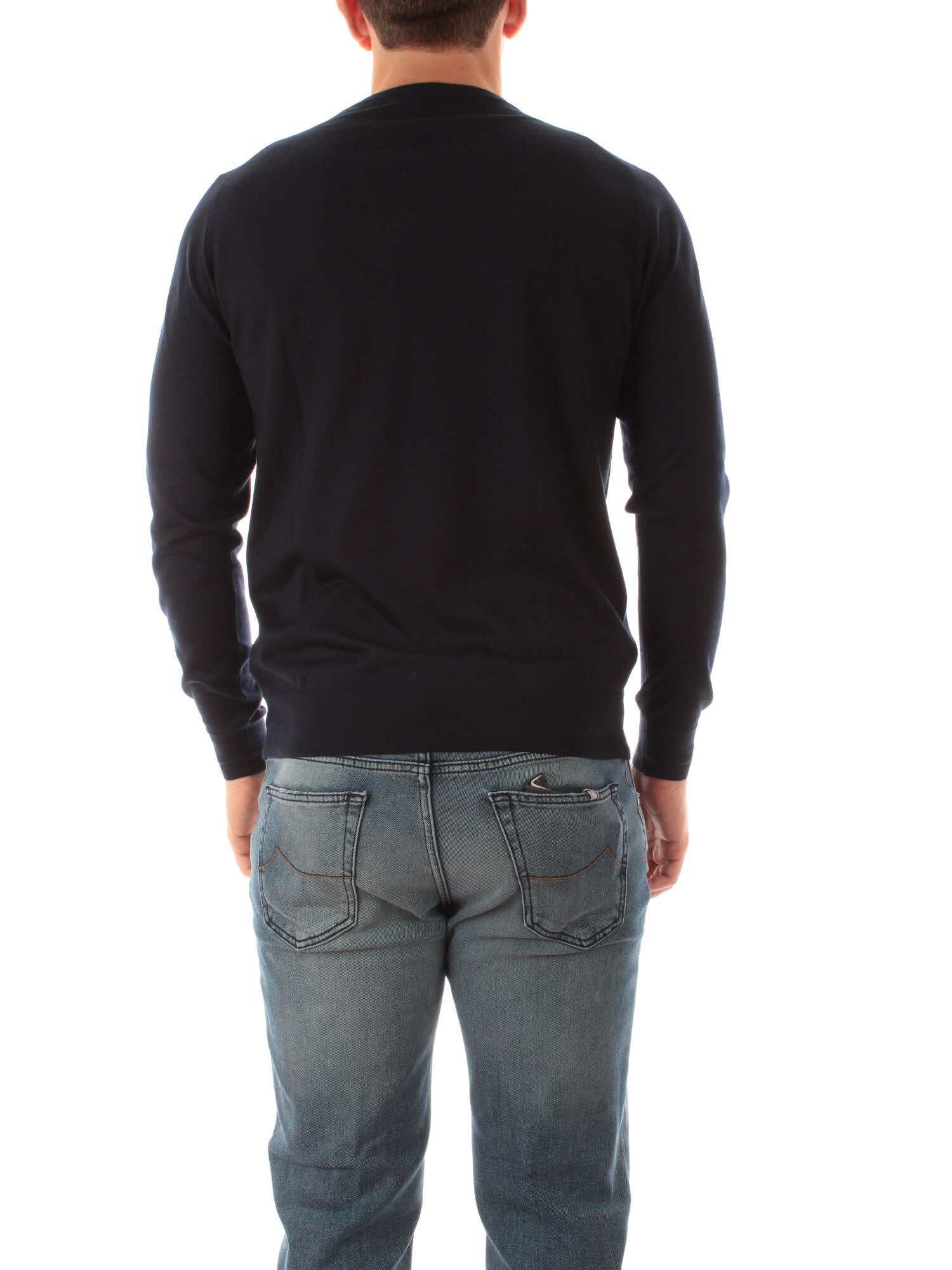 Fedeli maglia girocollo in misto cashmere e seta da uomo navy blu