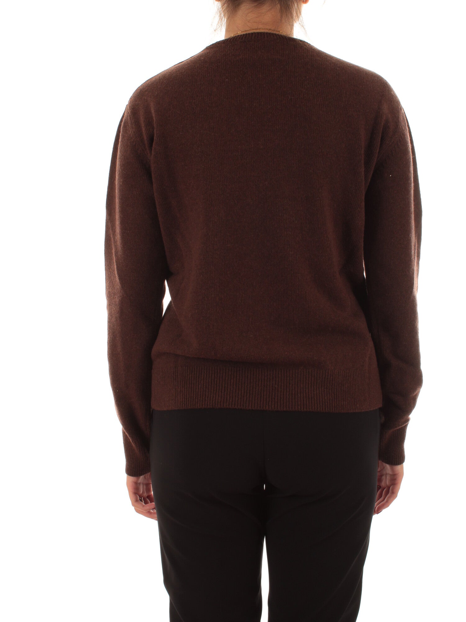 Maglia girocollo jacquard. Collo, polsi e fondo lavorati a costine. Altezza modella: 170 cm. Taglia indossata: S. 40% Lana, 30% Viscosa, 20% Poliammide, 10% Cashmere