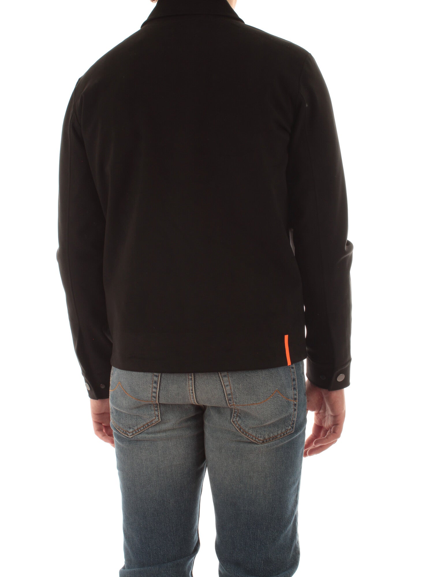 L’elegante giubbotto per la mezza stagione si distingue per il design lineare e senza tempo, che unisce la contemporaneità del minimalismo a classici dettagli di ispirazione workwear come il colletto a camicia. La creazione è realizzata in tessuto eco suede a effetto nabuk, dalla mano morbidissima, che coniuga l’eleganza informale all’attenzione per la sostenibilità. La costruzione interna è interamente termonastrata. Le tasche laterali si integrano perfettamente al profilo del modello, grazie alla chiusura a zip invisibili. L’interno presenta un taschino chiuso da zip invisibile e vivacizzato dal doppio filetto arancio fluo, accanto alle emblematica tag a cuore “Made with love, designed in Tuscany”. Altezza modello: 185 cm. Taglia indossata: 48. 80% poliestere, 20% elastan