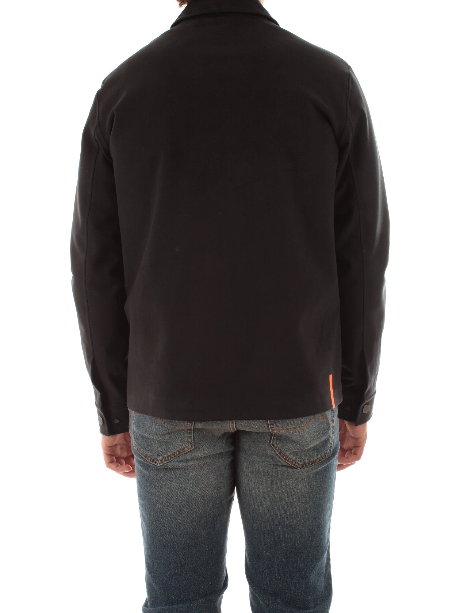 L’elegante giubbotto per la mezza stagione si distingue per il design lineare e senza tempo, che unisce la contemporaneità del minimalismo a classici dettagli di ispirazione workwear come il colletto a camicia. La creazione è realizzata in tessuto eco suede a effetto nabuk, dalla mano morbidissima, che coniuga l’eleganza informale all’attenzione per la sostenibilità. La costruzione interna è interamente termonastrata. Le tasche laterali si integrano perfettamente al profilo del modello, grazie alla chiusura a zip invisibili. L’interno presenta un taschino chiuso da zip invisibile e vivacizzato dal doppio filetto arancio fluo, accanto alle emblematica tag a cuore “Made with love, designed in Tuscany”. Altezza modello: 185 cm. Taglia indossata: 48. 80% poliestere, 20% elastan