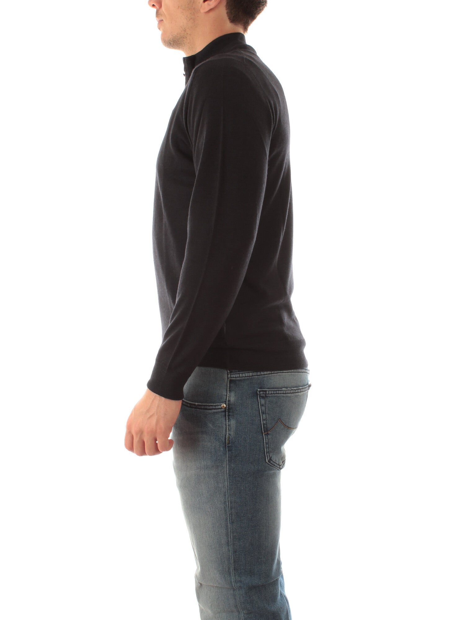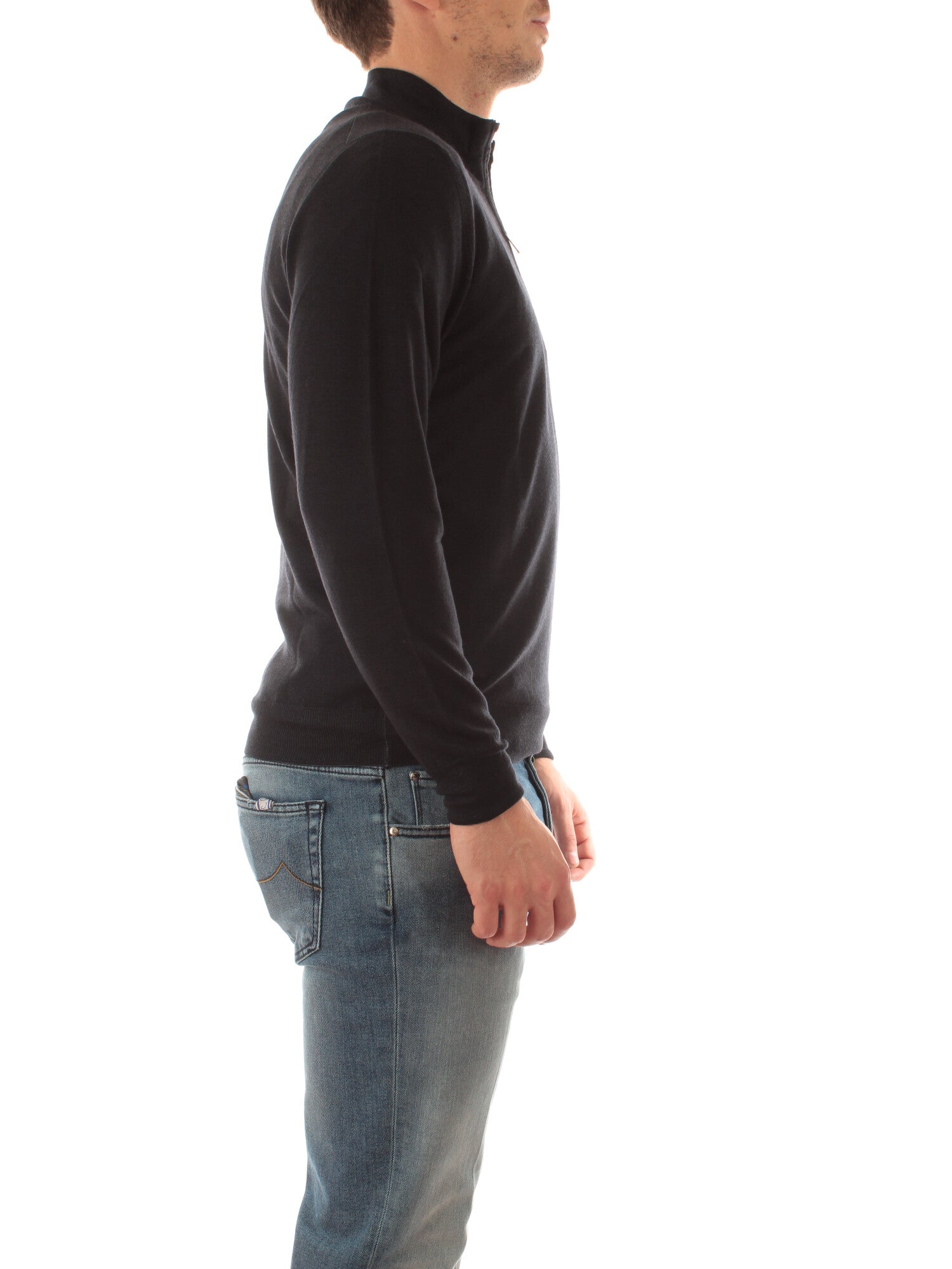 Fedeli maglia a collo alto e zip in lana merinos da uomo nero