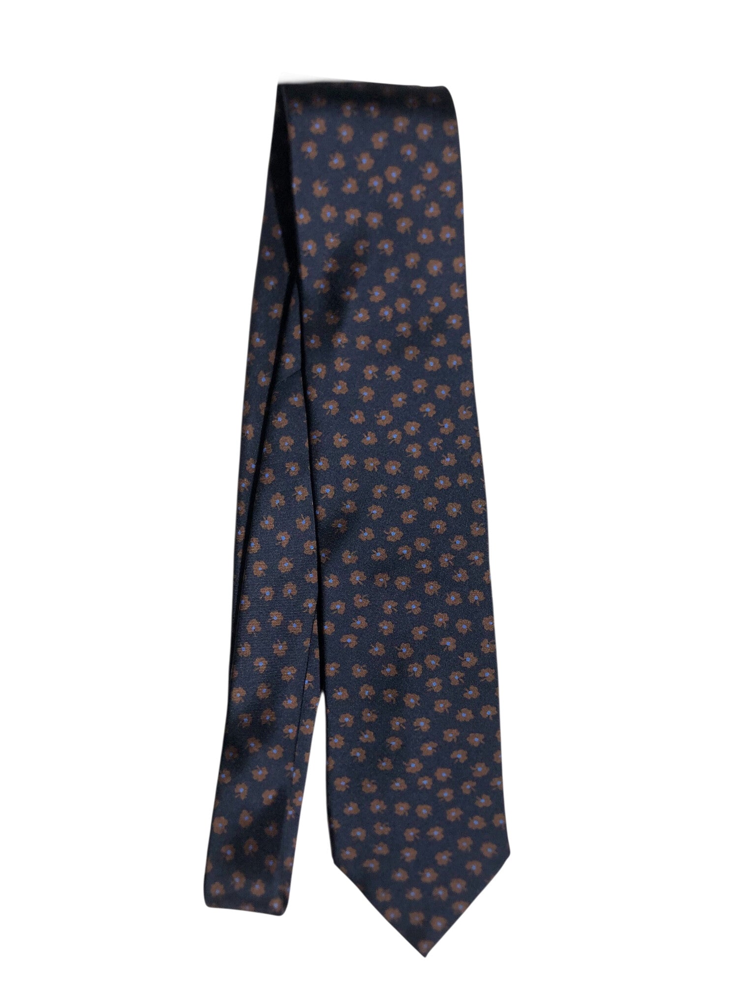 Fefè cravatta 3 pieghe da uomo in seta fondo blu con disegno fiori