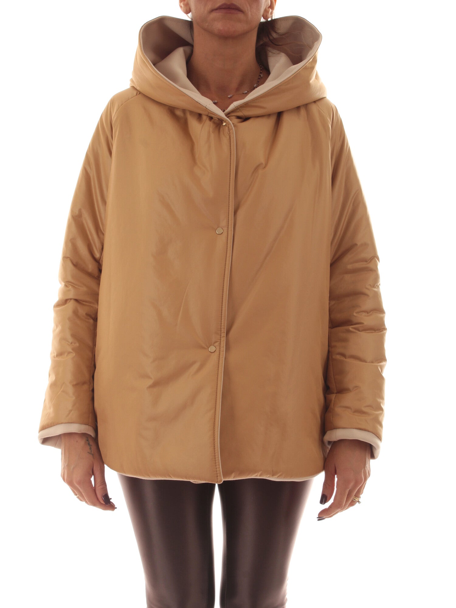 Giubbino reversibile con un lato in panno e uno in tessuto impermeabile. Collo con cappuccio. Tasche a toppa su un lato e a filo sull'altro. Chiusura con bottoni a pressione in metallo. Altezza modella: 170 cm. Taglia indossata: 38. 100% poliestere