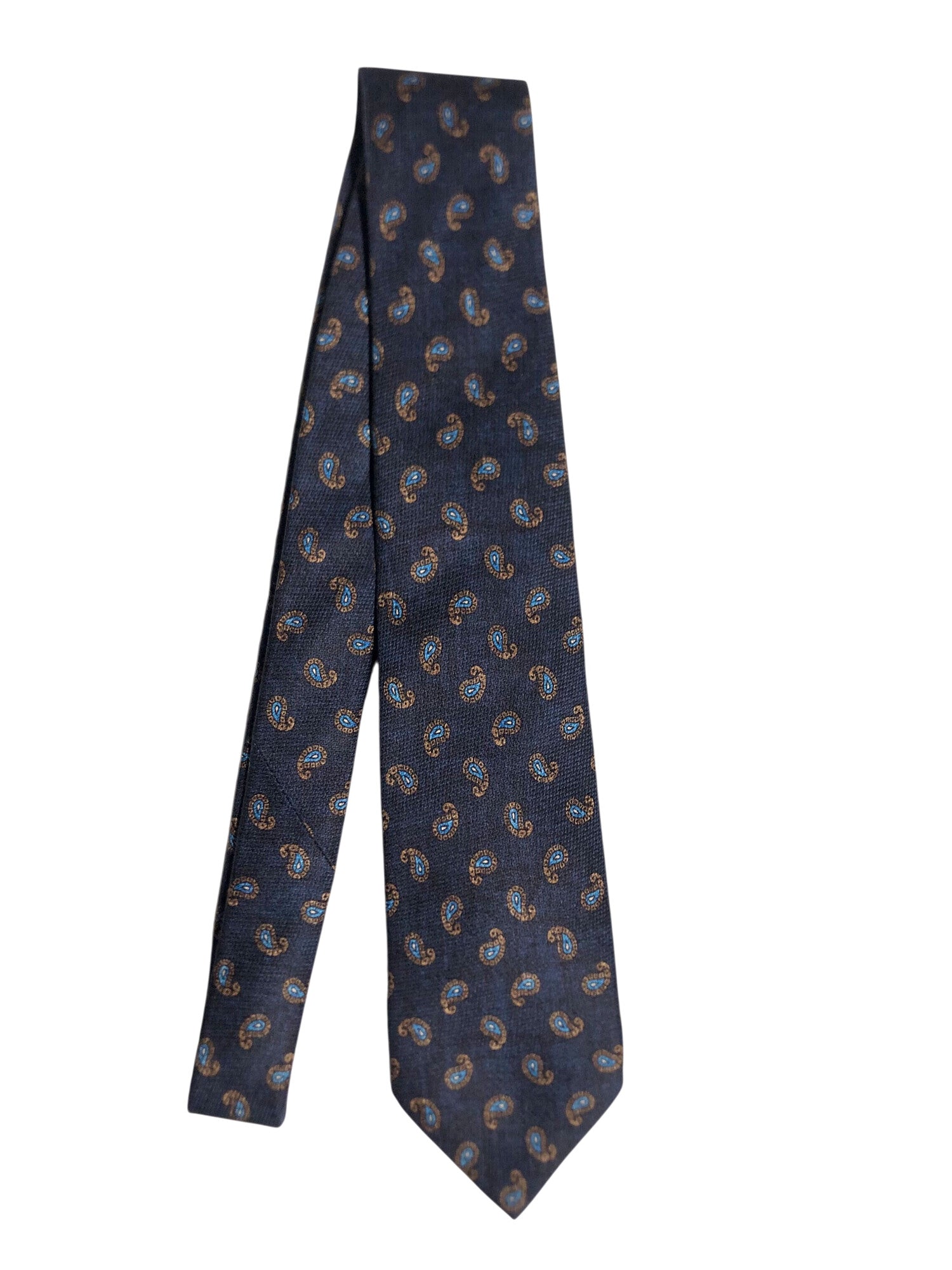 Kiton cravatta 7 pieghe in seta navy blue disegno cashmere da uomo