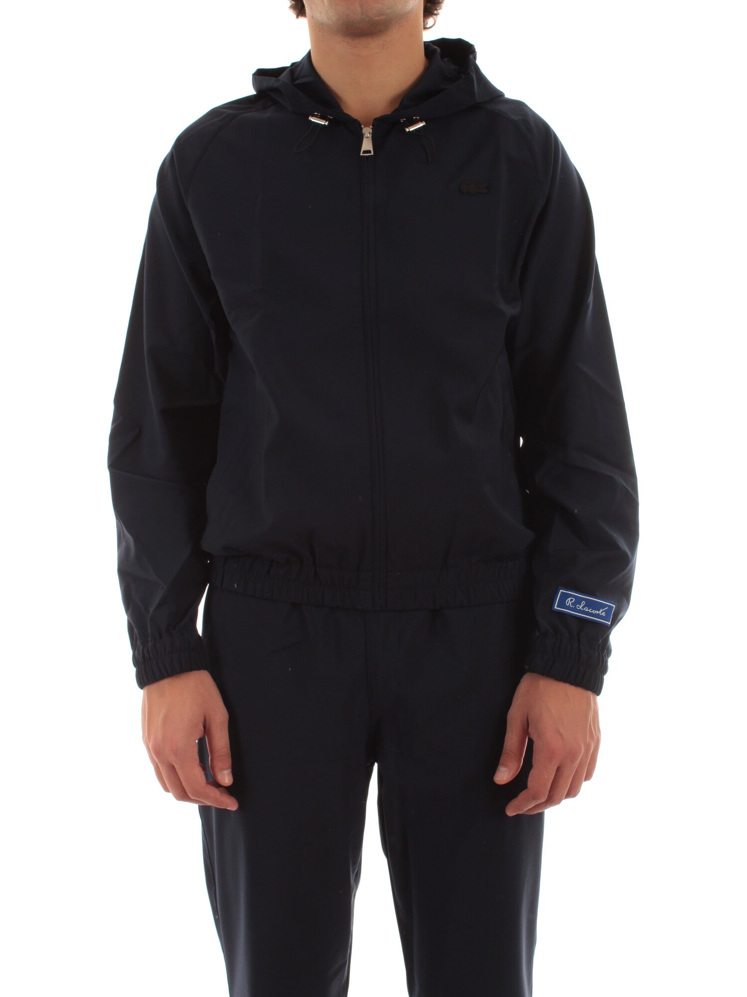 Giacca in jersey di misto lana con zip centrale con cursore brandizzato. Cappuccio regolabile con coulisse elasticizzata e stopper. Due tasche laterali con zip, una tasca interna. Etichetta René Lacoste sulla parte inferiore della manica sinistra. Coccodrillo tono su tono ricamato sul busto. Altezza modello: 185 cm. Taglia indossata: M. 53% Poliestere, 43% Lana, 4% Elastan