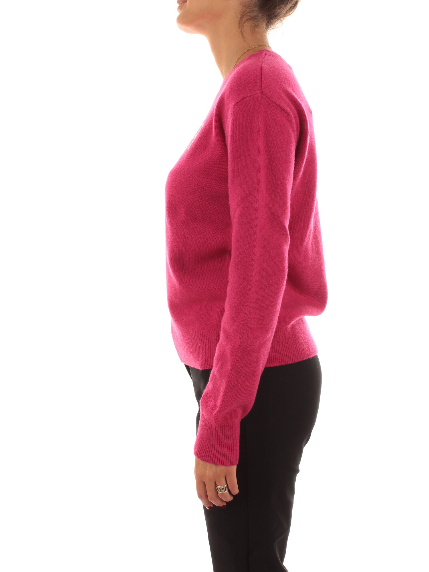 Maglia girocollo jacquard. Collo, polsi e fondo lavorati a costine. Altezza modella: 170 cm. Taglia indossata: S. 40% Lana, 30% Viscosa, 20% Poliammide, 10% Cashmere