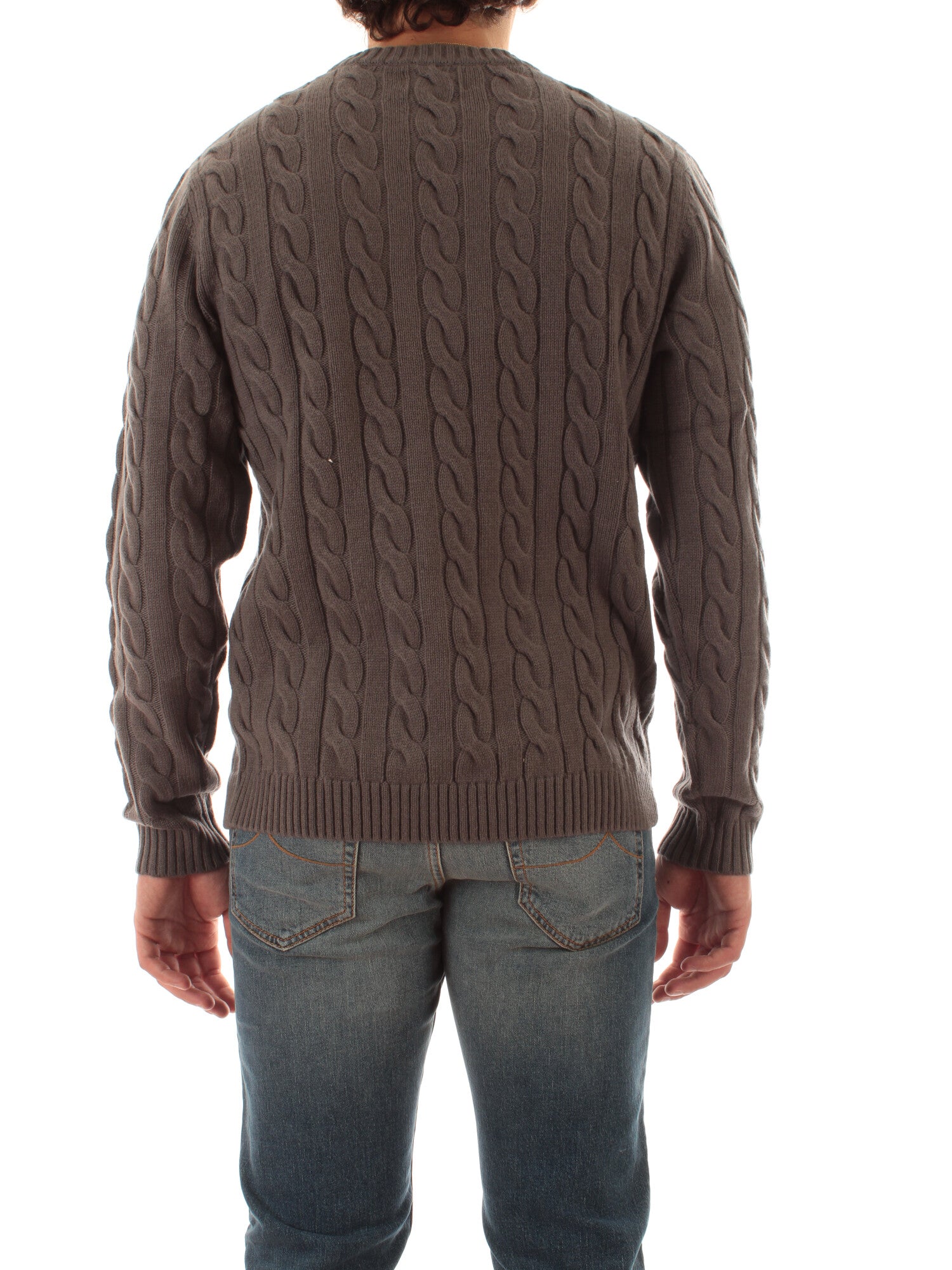 Sun 68 maglia girocollo in misto lana a trecce da uomo grigio scuro