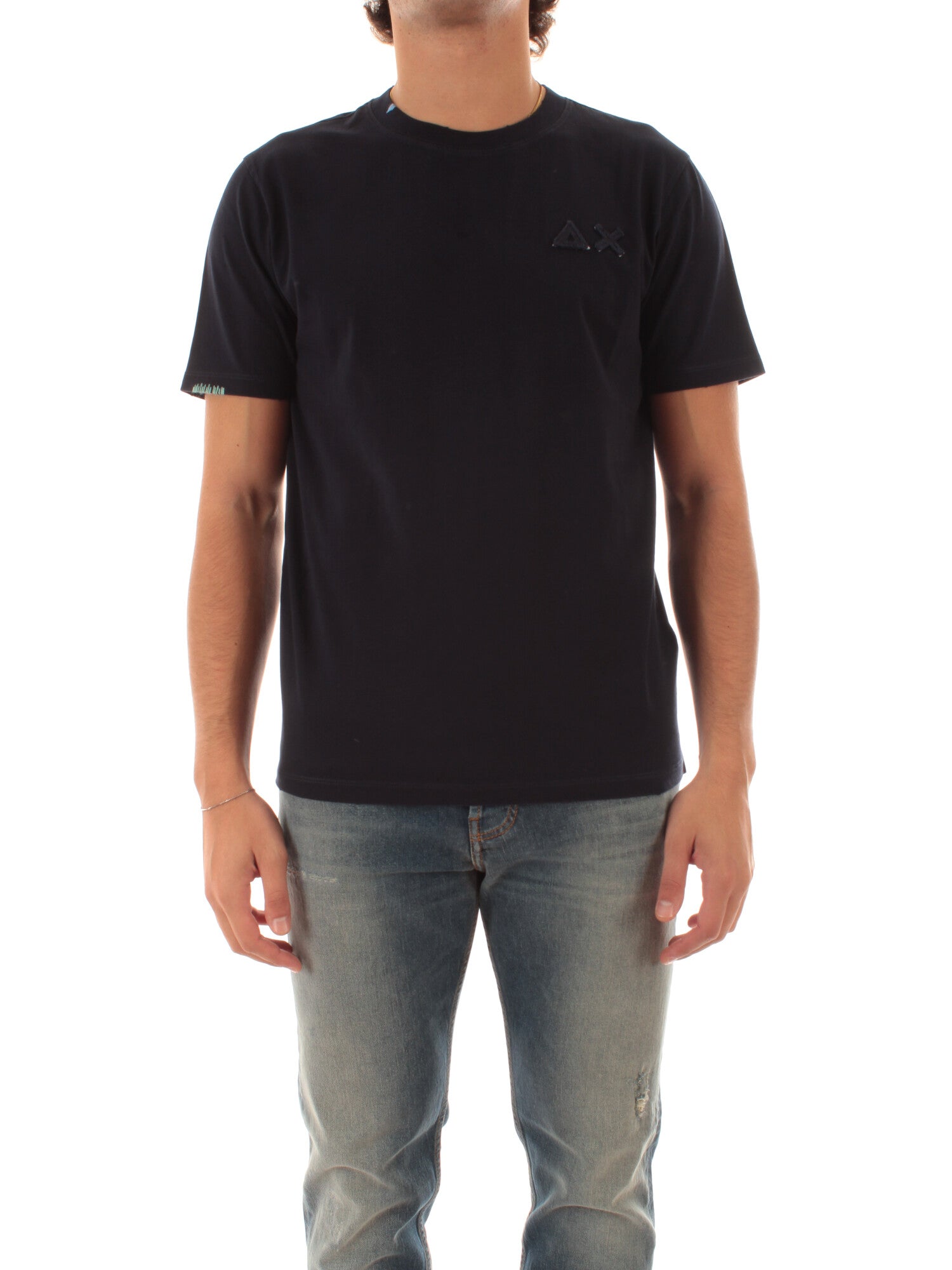T-shirt in jersey di cotone effetto vintage. Girocollo con mini dettaglio a contrasto. Maniche corte con ricamo a contrasto. Patch SUN68 ricamata sul petto. Altezza modello: 185 cm. Taglia indossata: M. 100% Cotone