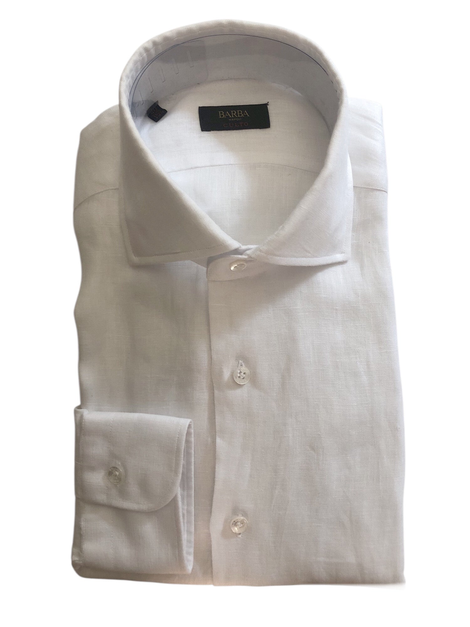 La camicia modello Culto, a maniche lunghe, con collo francese è realizzata in lino 100%. Vestibilità slim. Made in Italy.