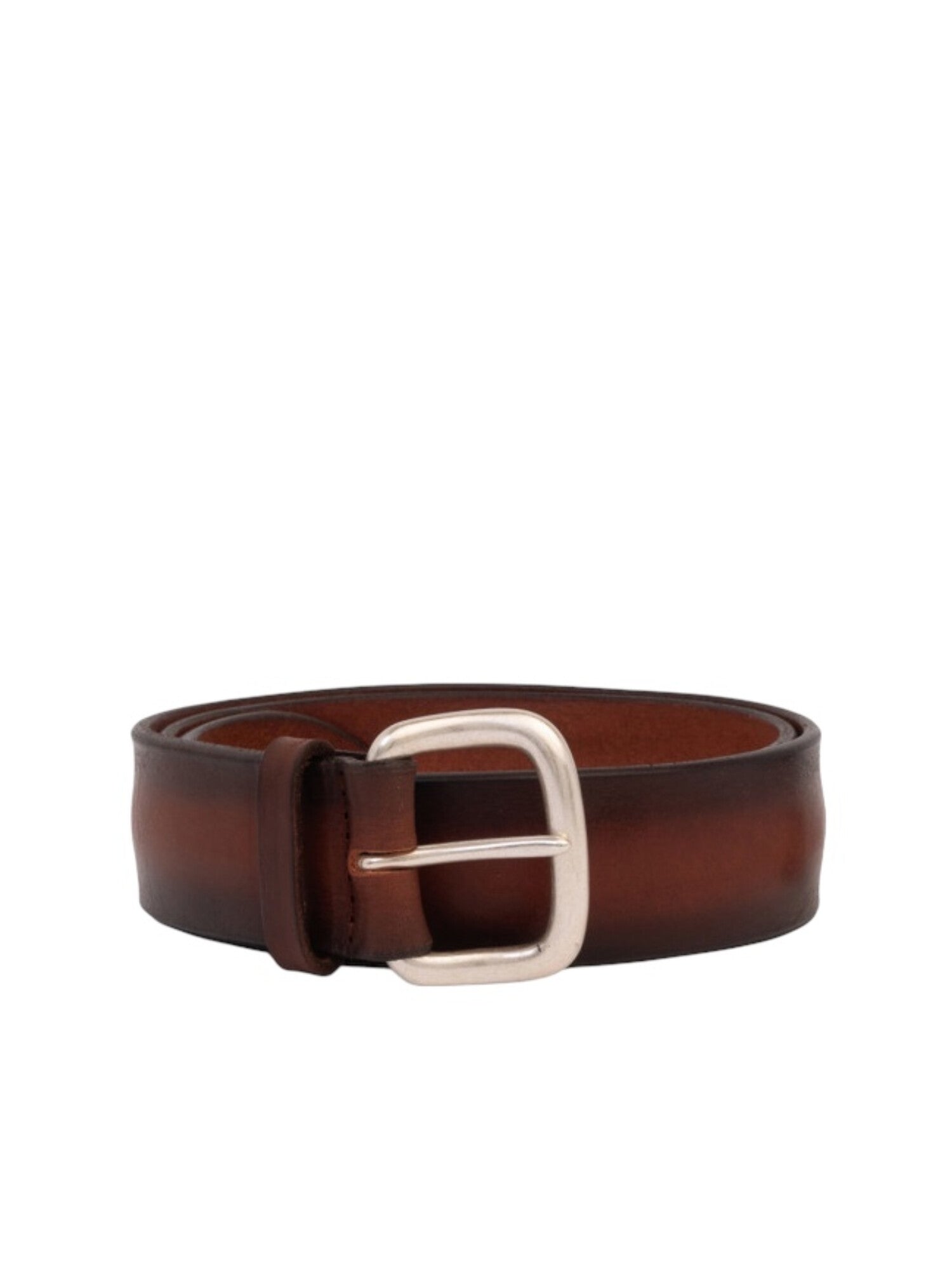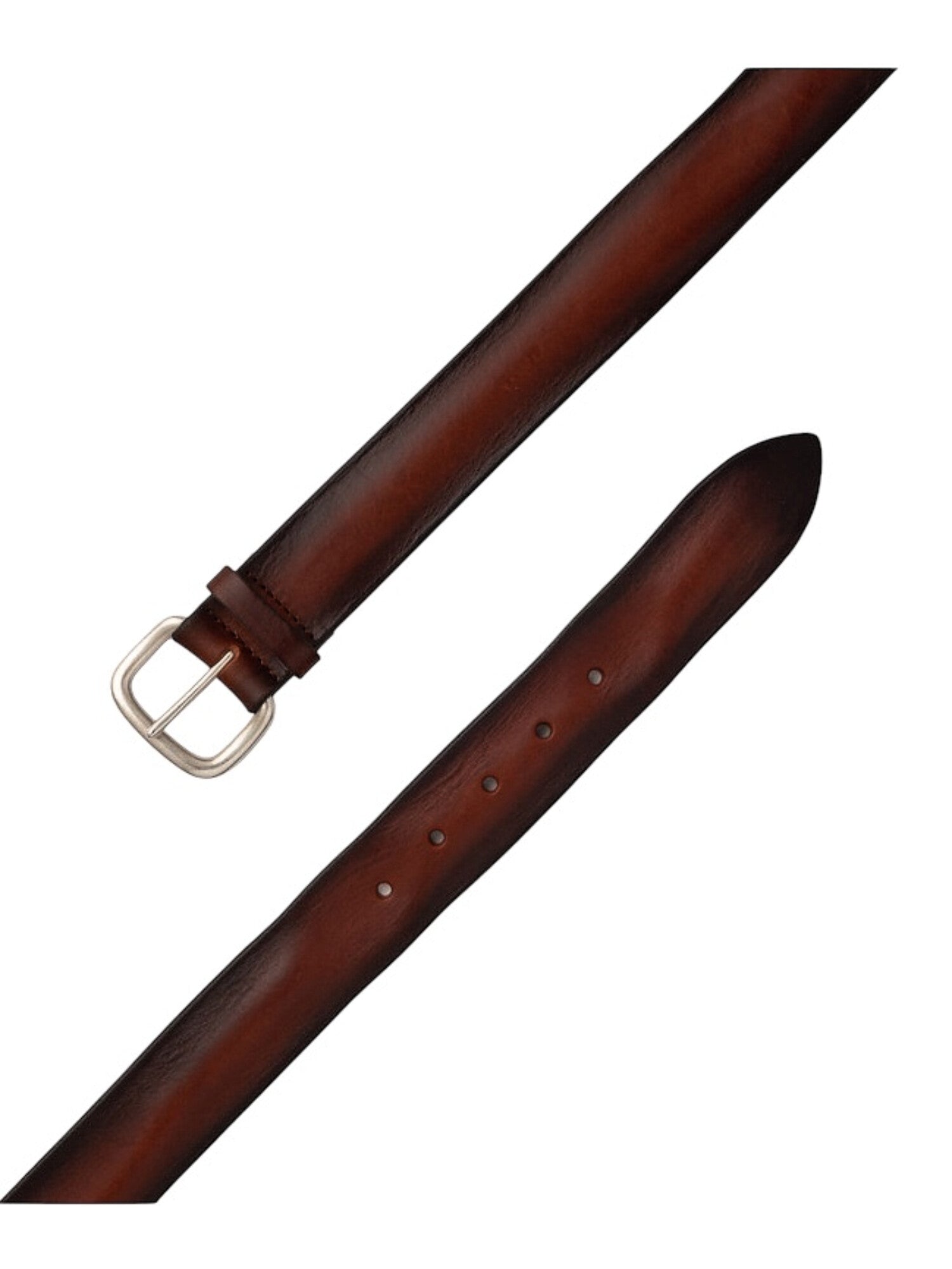 Cintura in cuoio schiacciato spazzolato. Fibbia: finitura argento inglese. Altezza: 4 cm. 100% Pelle