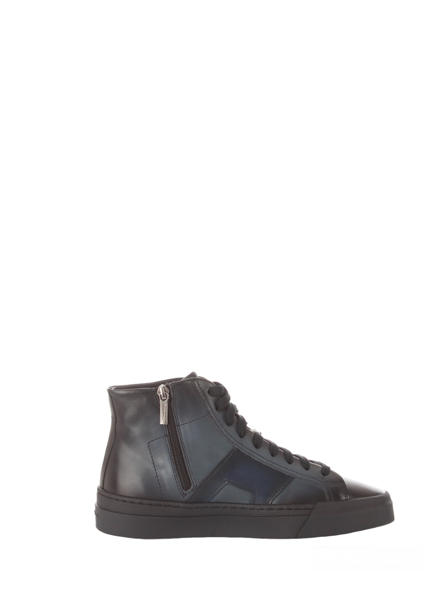 Santoni sneaker double buckle alta da uomo in pelle blue