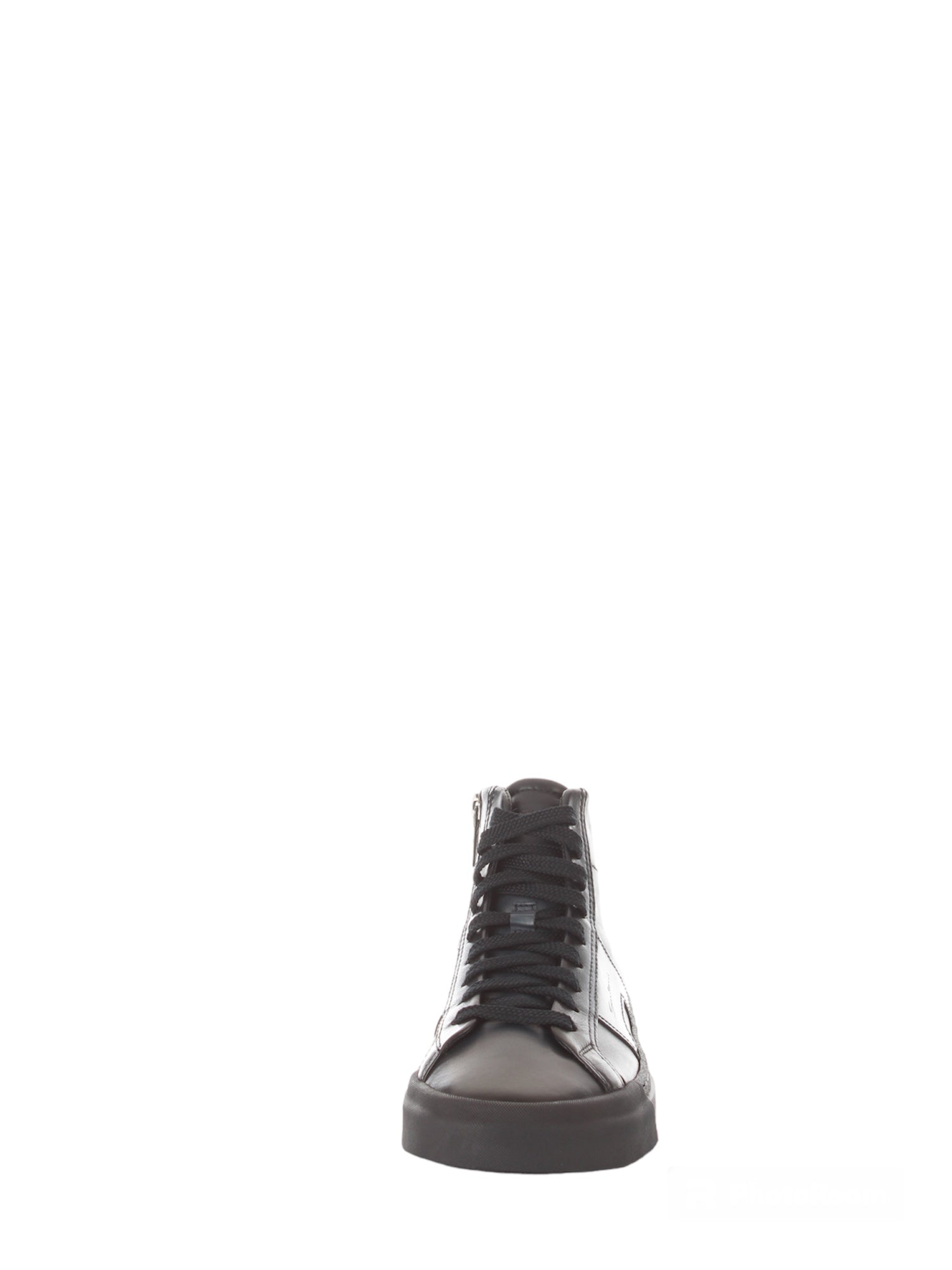Sneaker high top realizzata in pelle con dettaglio d’ispirazione doppia fibbia sui lati. Chiusura con lacci e zip su lato interno, suola a cassetta in gomma, lettering Santoni inciso sul battistrada. Made in Italy. Tomaia: 100% pelle. Fodera: 100% pelle. Suola: 100% Gomma.