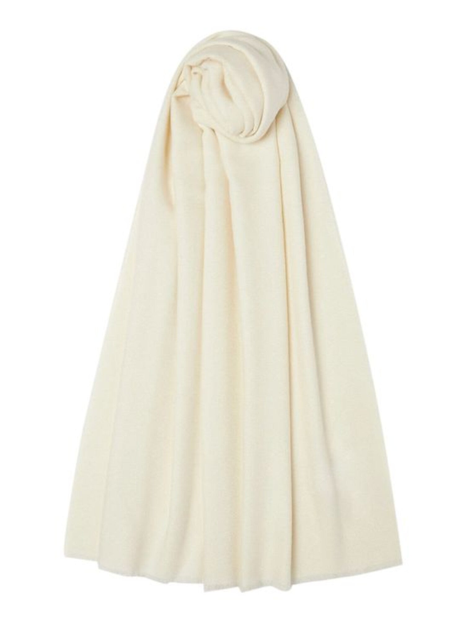 Stola in filato lurex e orli sfrangiati. Dimensioni: 75x195 cm. 79% poliestere, 20% viscosa, 1% fibra metallizzata