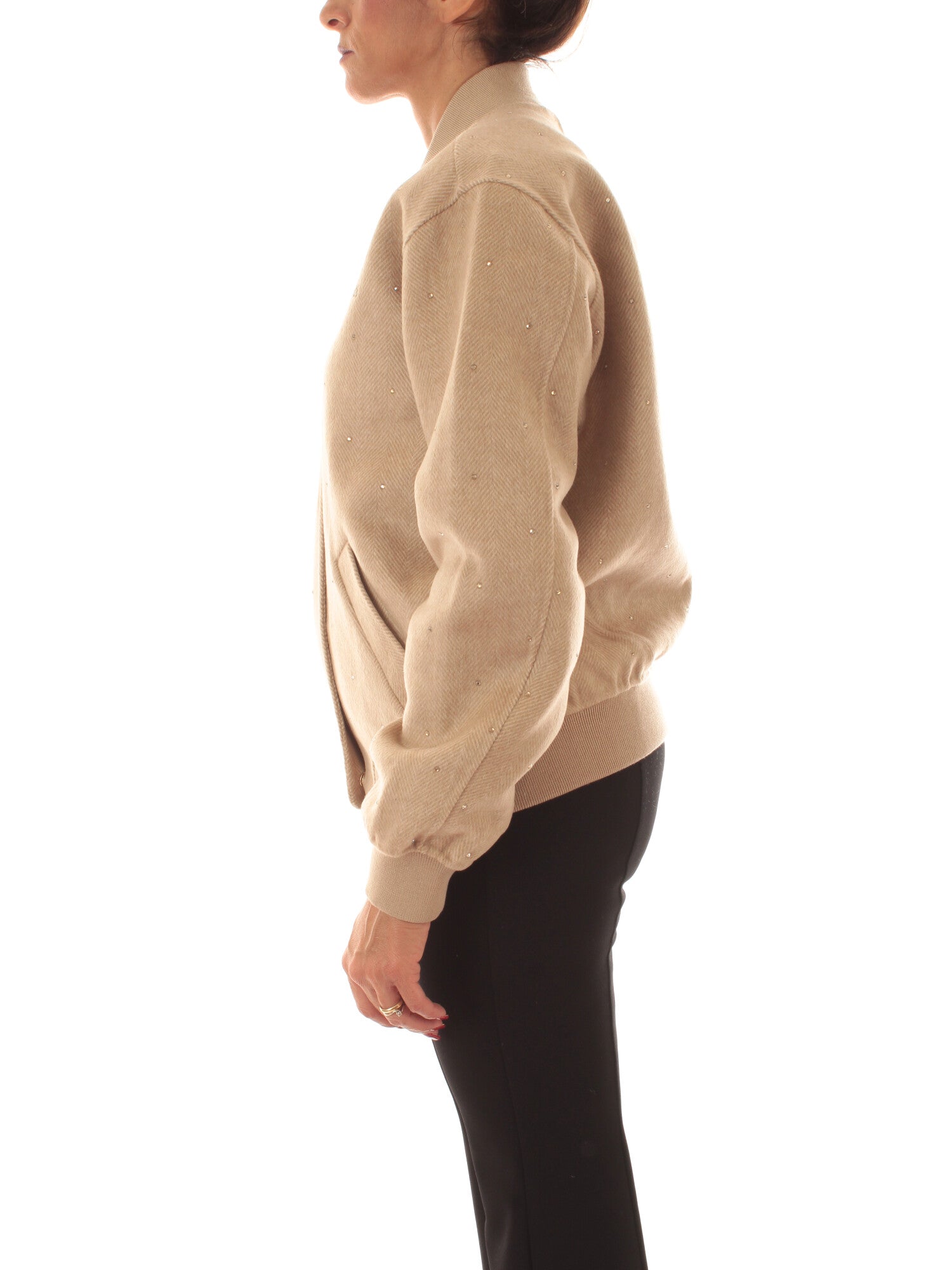 Giacca in panno double con polsini in maglia elastica, tasche a filo e chiusura nascosta con zip. Ricamo di strass all-over e logo ricamato sul petto. Altezza modella: 172 cm. Taglia indossata: S. 80% lana, 20% poliestere