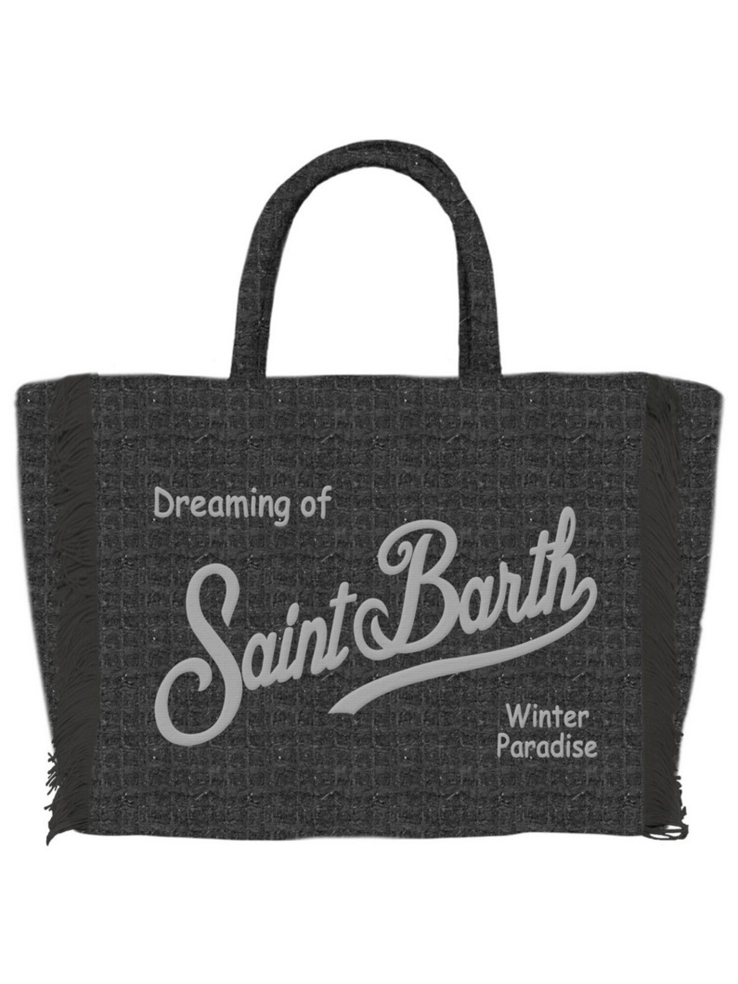Borsa in tweed. Logo St.Barth ricamato. Chiusura con zip. Doppi manici in tessuto. Tracolla removibile. Orli sfrangiati. 29 x 25 x 12 cm. 100% poliestere