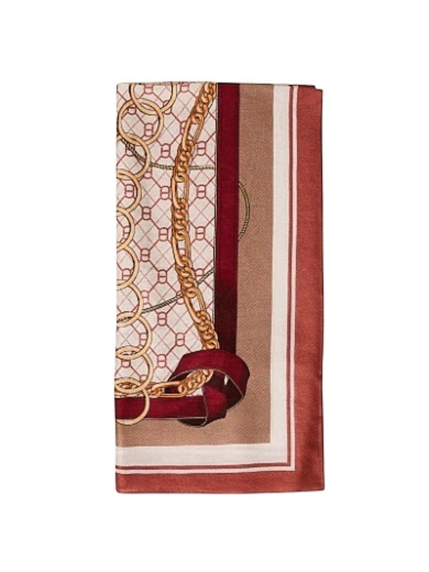 Kefiah in misto viscosa con stampa catene e Oval T. Dimensioni: 120x120 cm. 97% viscosa, 3% lana