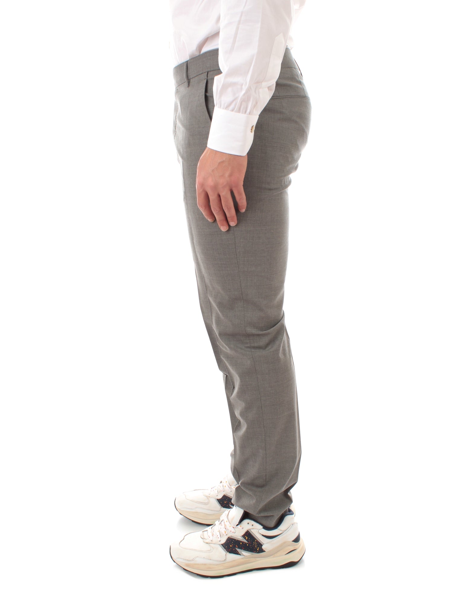 Pantalone con cinta in tessuto, bottoni e zip per chiusura. Tasca America e a filo sul retro con bottone. 97% Lana Vergine Natural Stretch, 3% Elastan