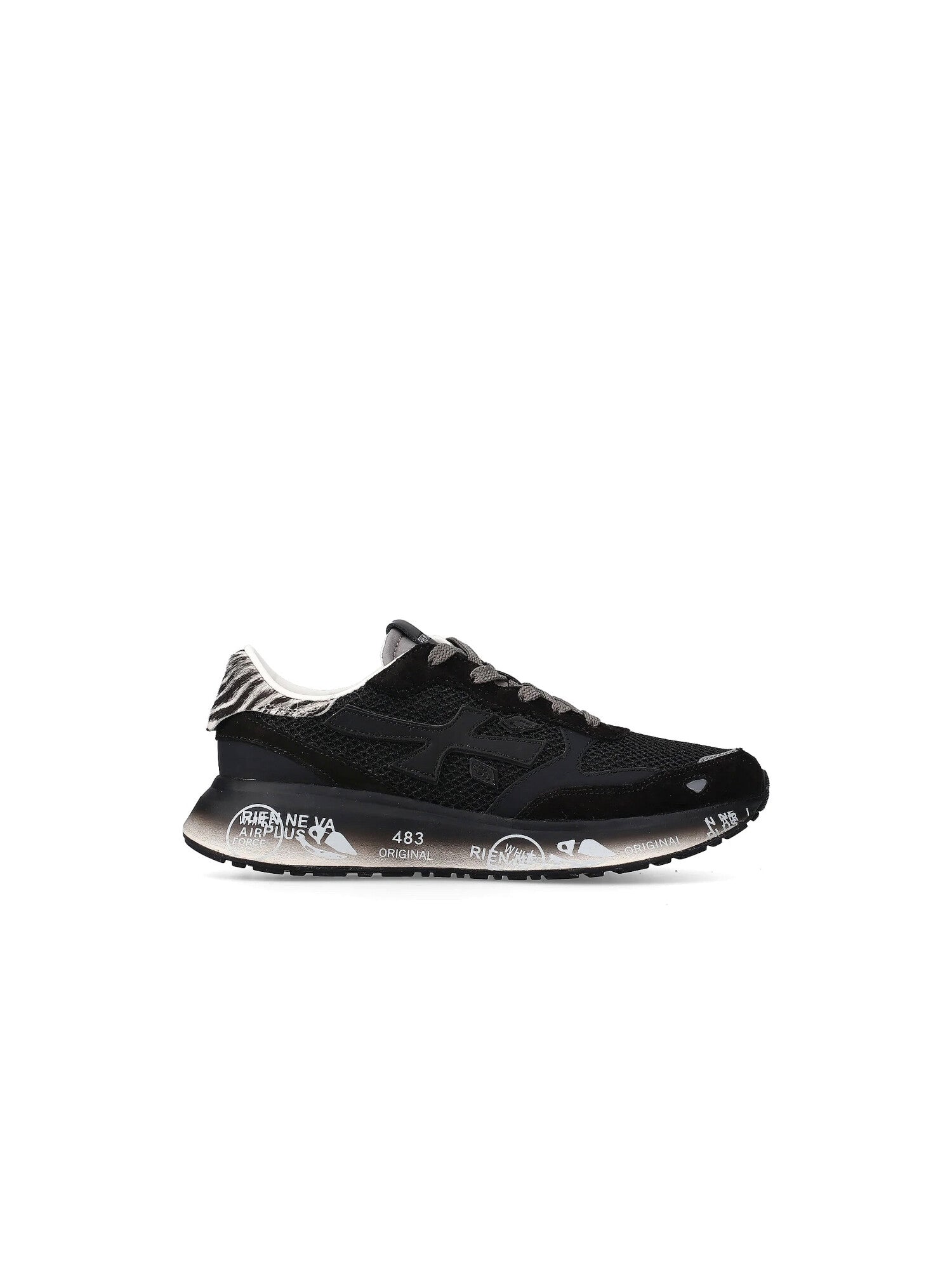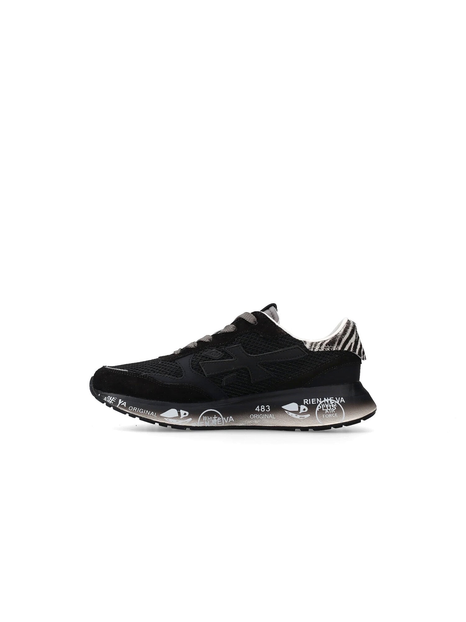 Sneaker rétro running rivisitata in chiave moderna. Realizzata con materiali di alta qualità, combina suede, pelle e tessuto per un look distintivo. La suola, arricchita dagli iconici dettagli stile Premiata, esalta l'identità urban e casual-chic. Altezza suola: 4 cm. SOLE: 70% EVA 30% RUBBER. UPPER: 15% pu 45% pl 15% pa 20% calf leather 5% hairy calf. LINING: 86% goat leather 14% calf leather