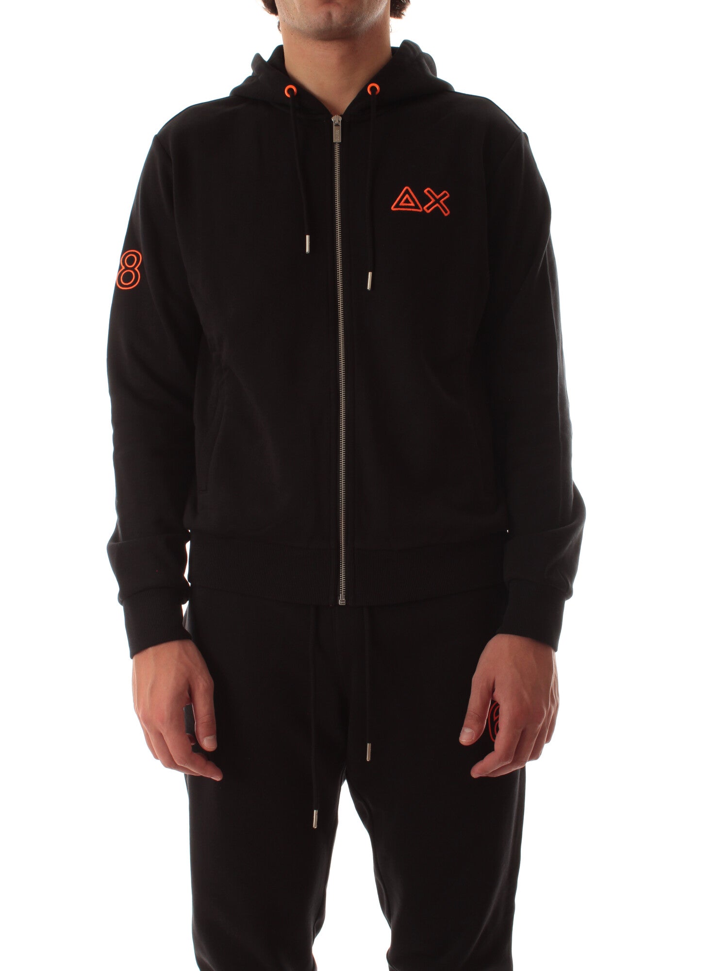 Felpa in misto cotone. Cappuccio con coulisse. Maniche lunghe. Tasche laterali. Logo fluo SUN68 ricamato sul petto e sulla manica. Chiusura con zip. Altezza modello: 185 cm. Taglia indossata: M. 84% Cotone, 16% Poliestere
