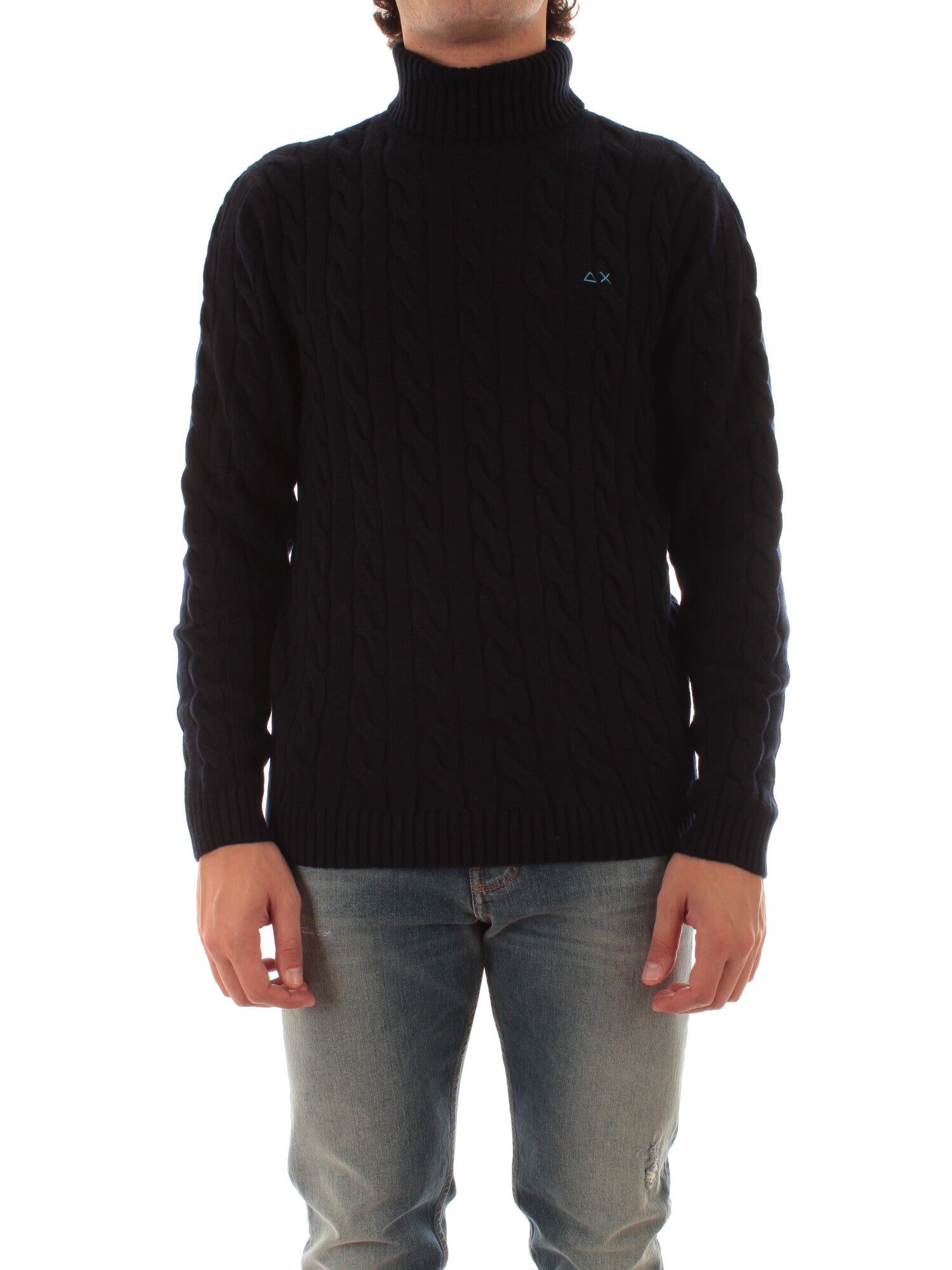 Sun 68 maglia dolcevita in misto lana a trecce da uomo navy blue