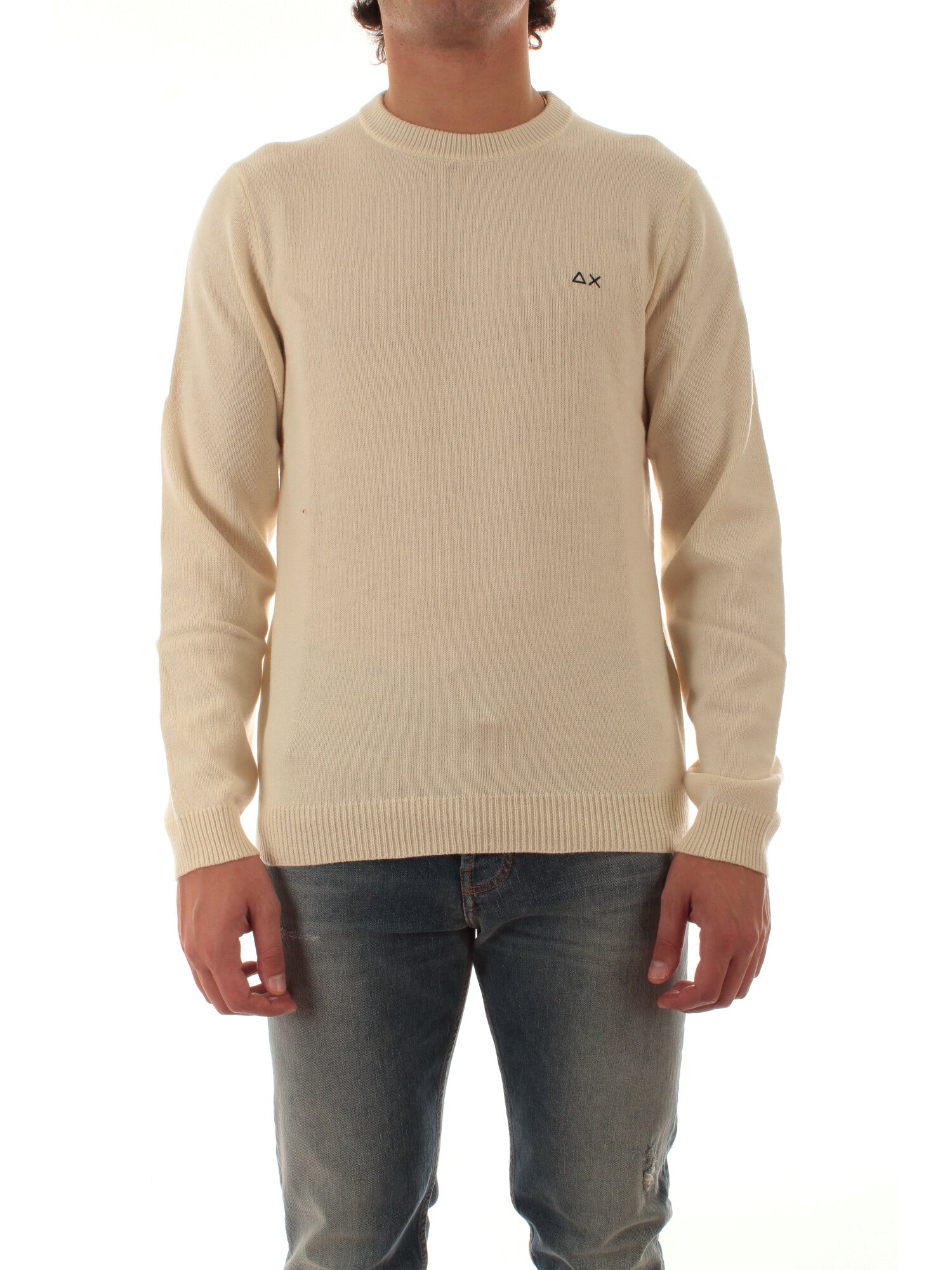 Maglia in filato di misto lana e cashmere. Girocollo. Maniche lunghe. Bordi a costine. Logo SUN68 ricamato sul petto. Altezza modello: 185 cm. Taglia indossata: M. 60% Lana, 35% Poliammidica, 5% Cashmere