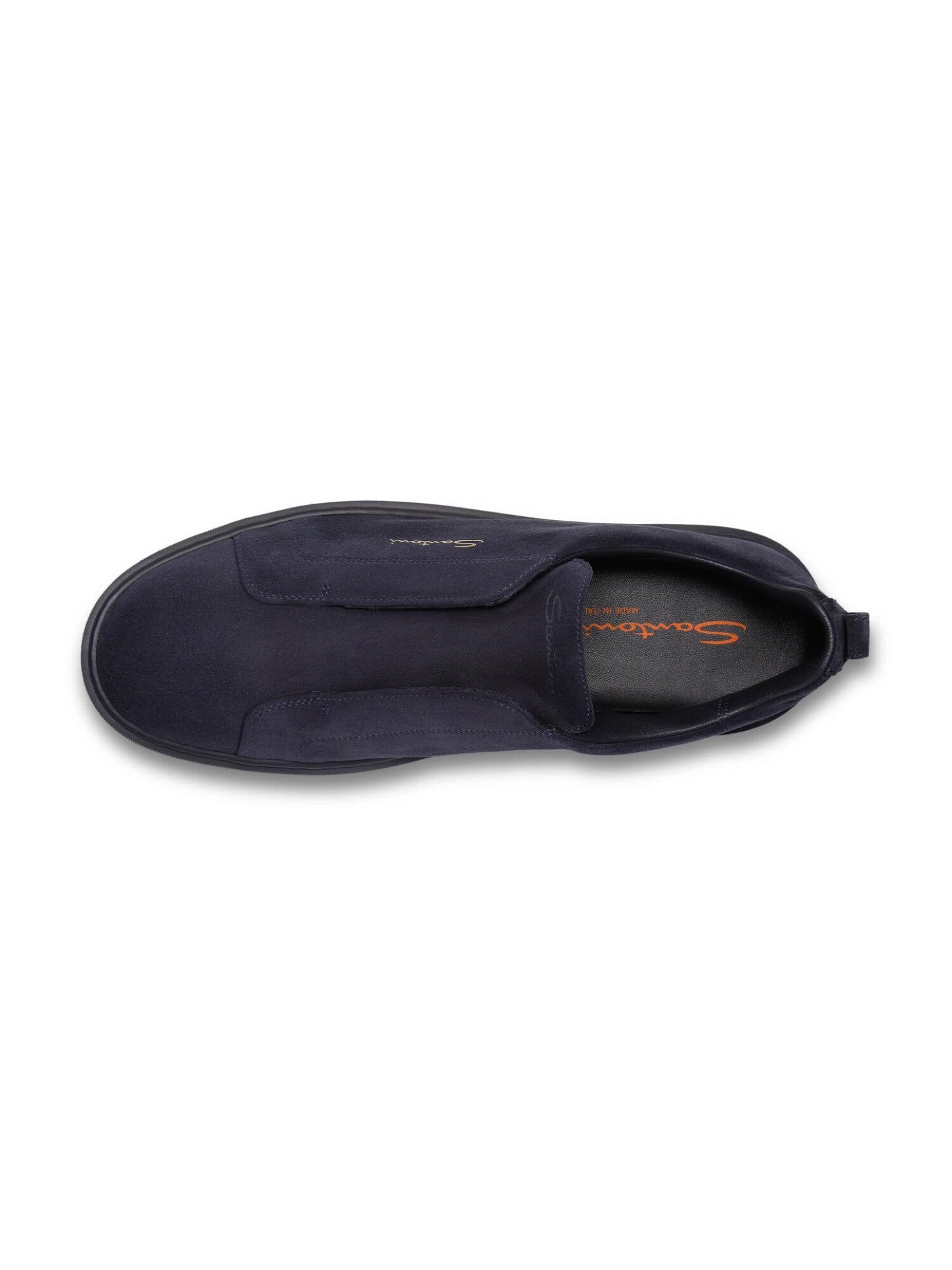 Sneaker slip-on in suede. Loop sul tallone. Punta arrotondata. Suola a cassetta in gomma tono su tono. Battistrada con decoro doppia fibbia arancione. Made in Italy. 100% Pelle
