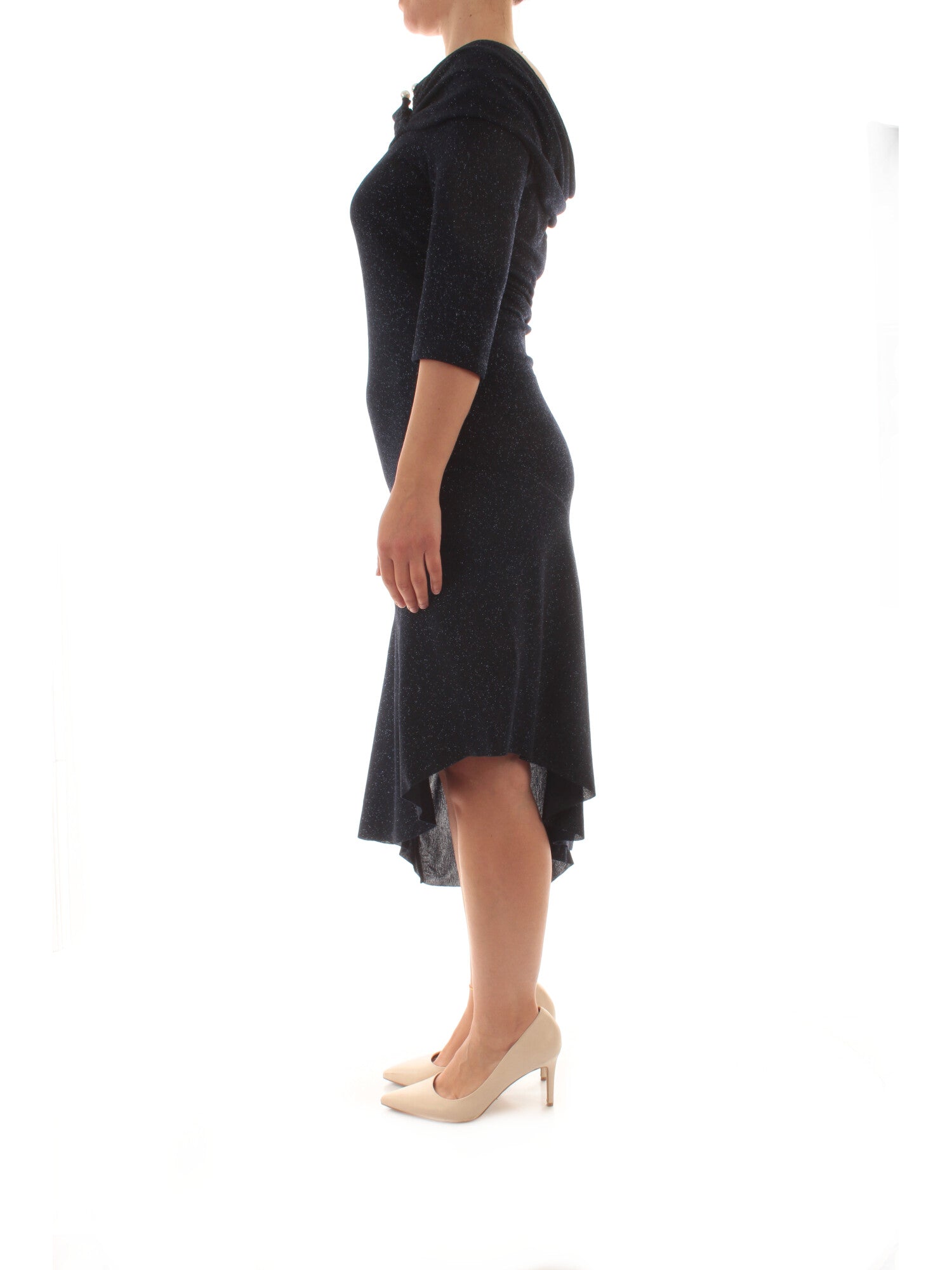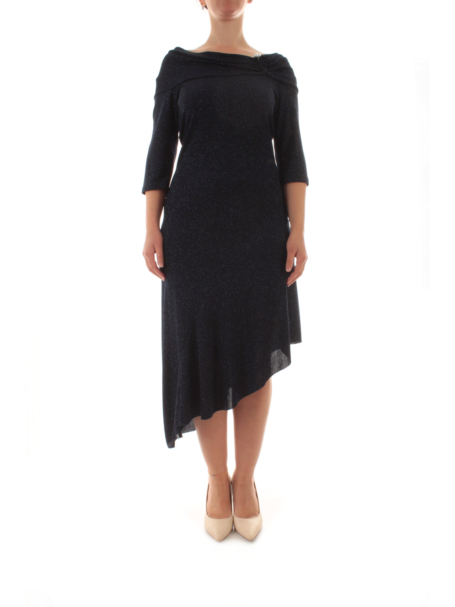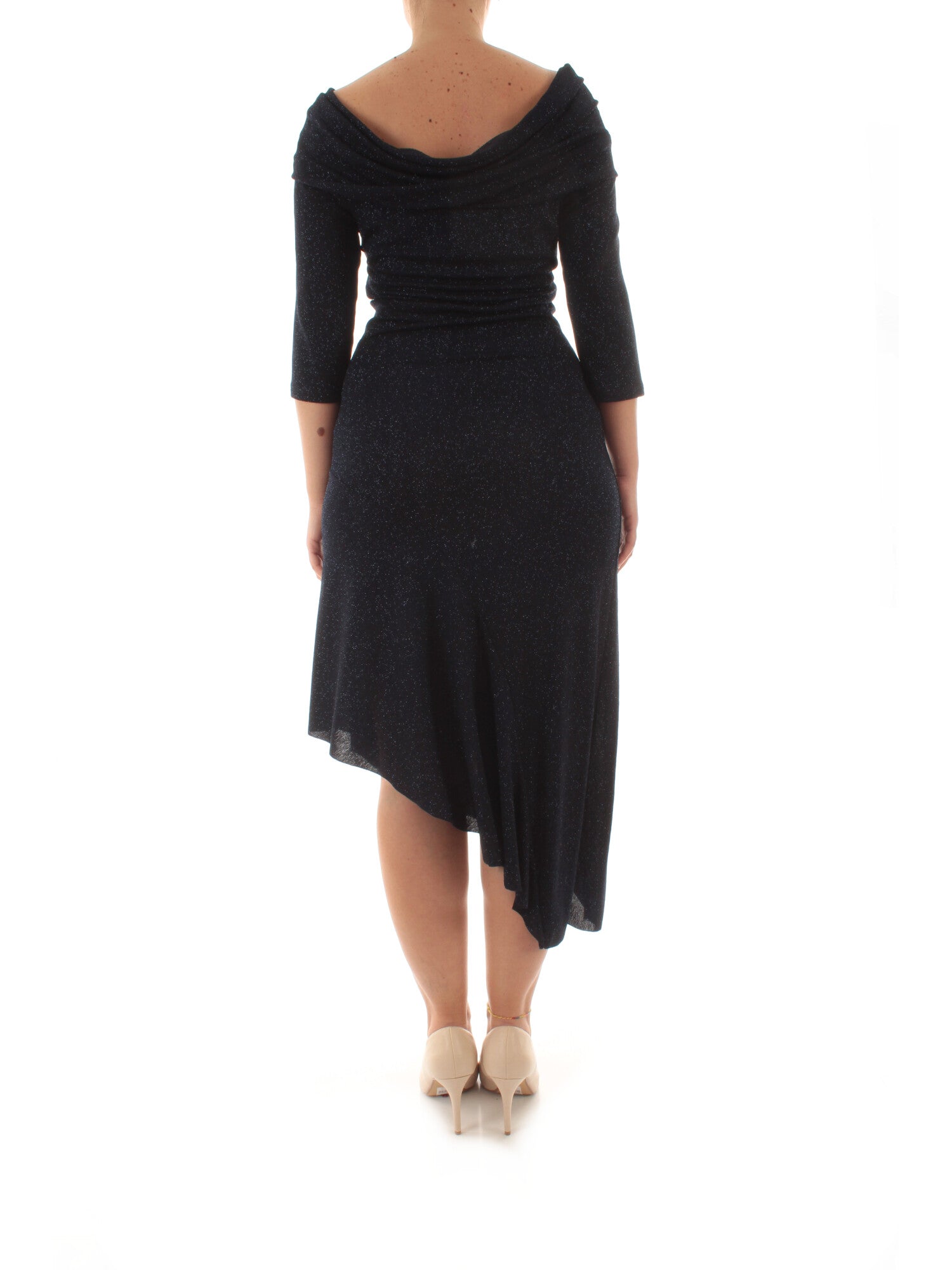 Abito glietterato con manica a tre quarti, scollo bardot con dettaglio gioiello e fondo asimmetrico. Altezza modella: 170 cm. Taglia indossata: 46. 95% poliestere, 5% elastan