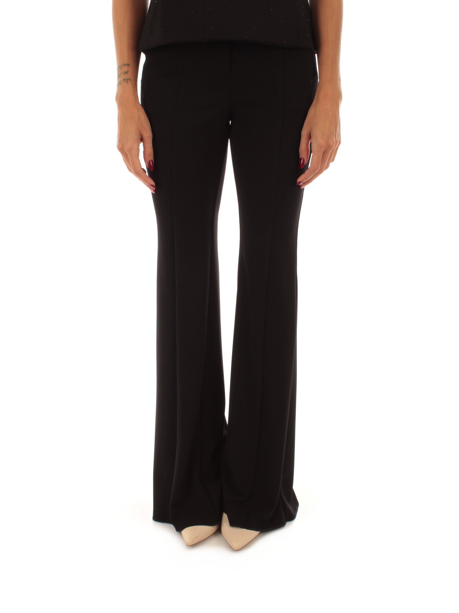 Pantaloni in jersey crêpe stretch. Linea a zampa. Chiusura con zip nascosta e gancio doppio. Tasche alla francese. Vita con passanti, tagli verticali davanti e dietro. Fit regolare. Altezza modella: 170 cm. Taglia indossata: 38. 95% poliestere, 5% elastan