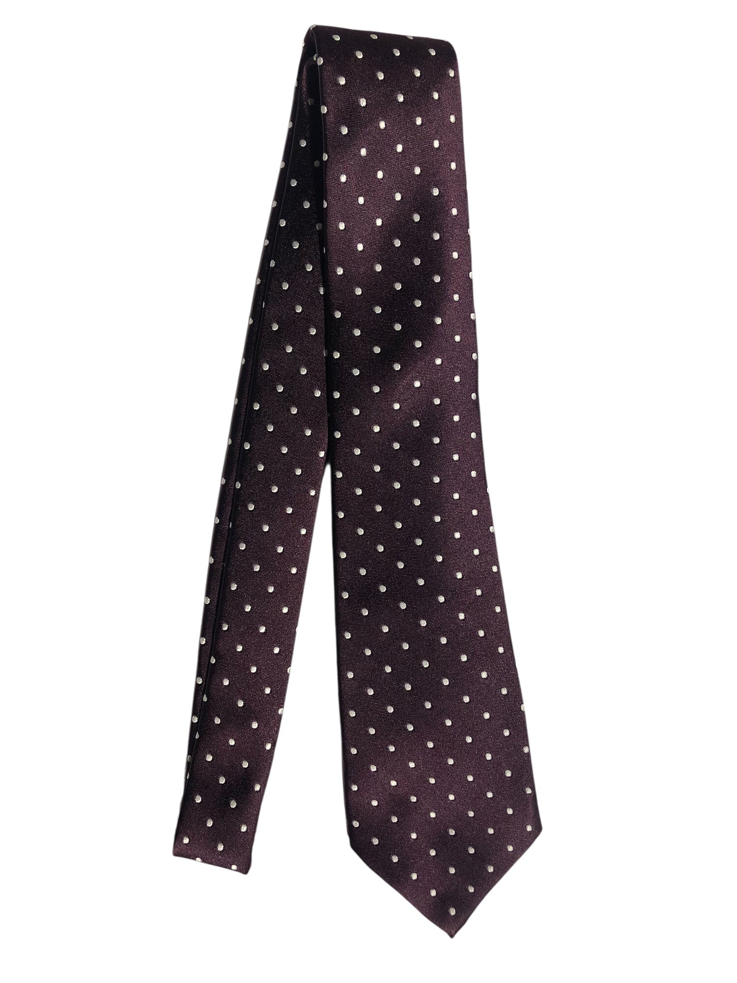 Kiton cravatta 7 pieghe in seta melanzana pois bianco da uomo