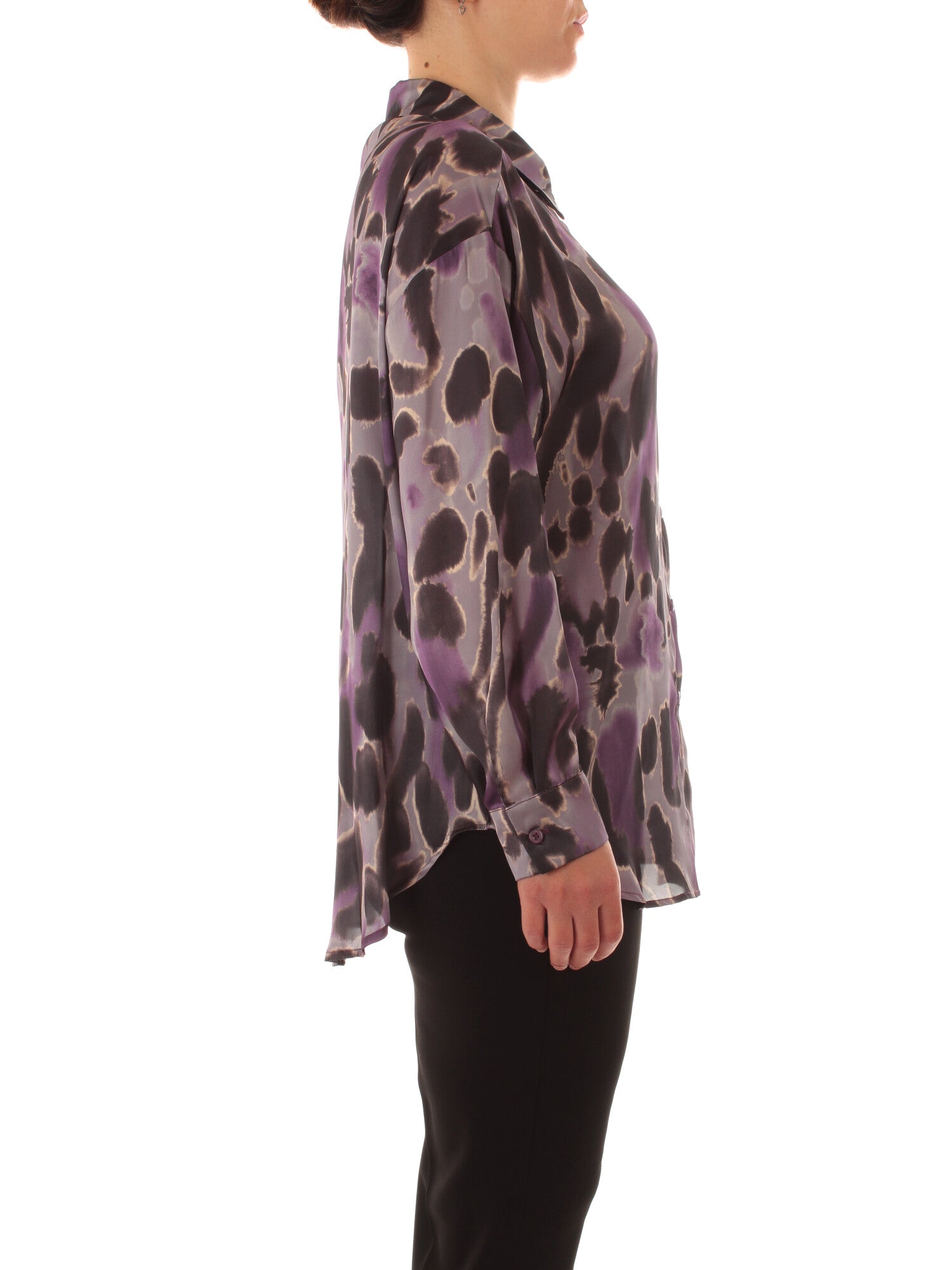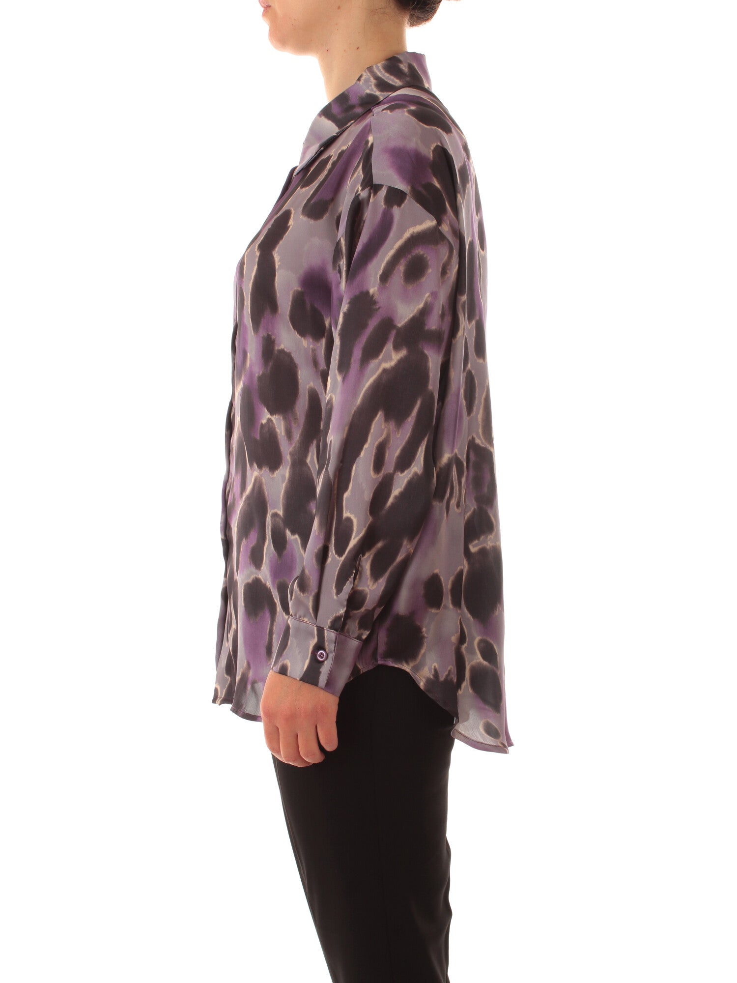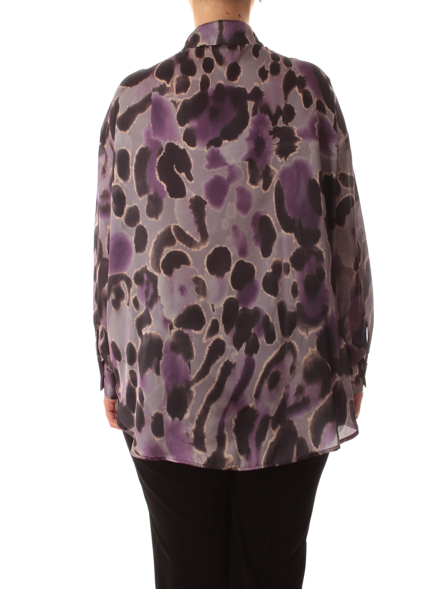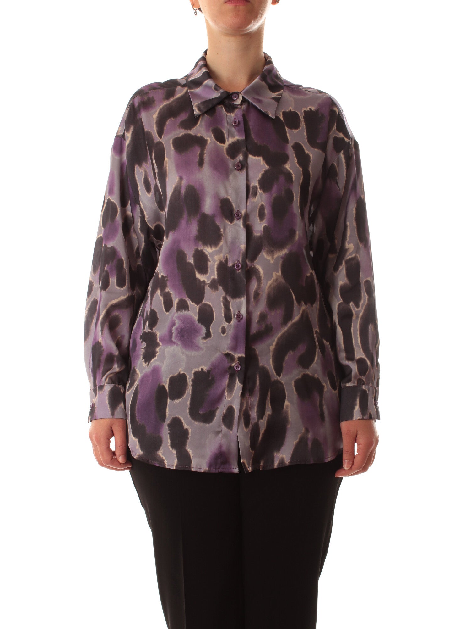 Camicia in raso a fantasia con fondo più lungo sul retro. Maniche lunghe con polsini e collo classico. Altezza modella: 170 cm. Taglia indossata: 46. 100% poliestere