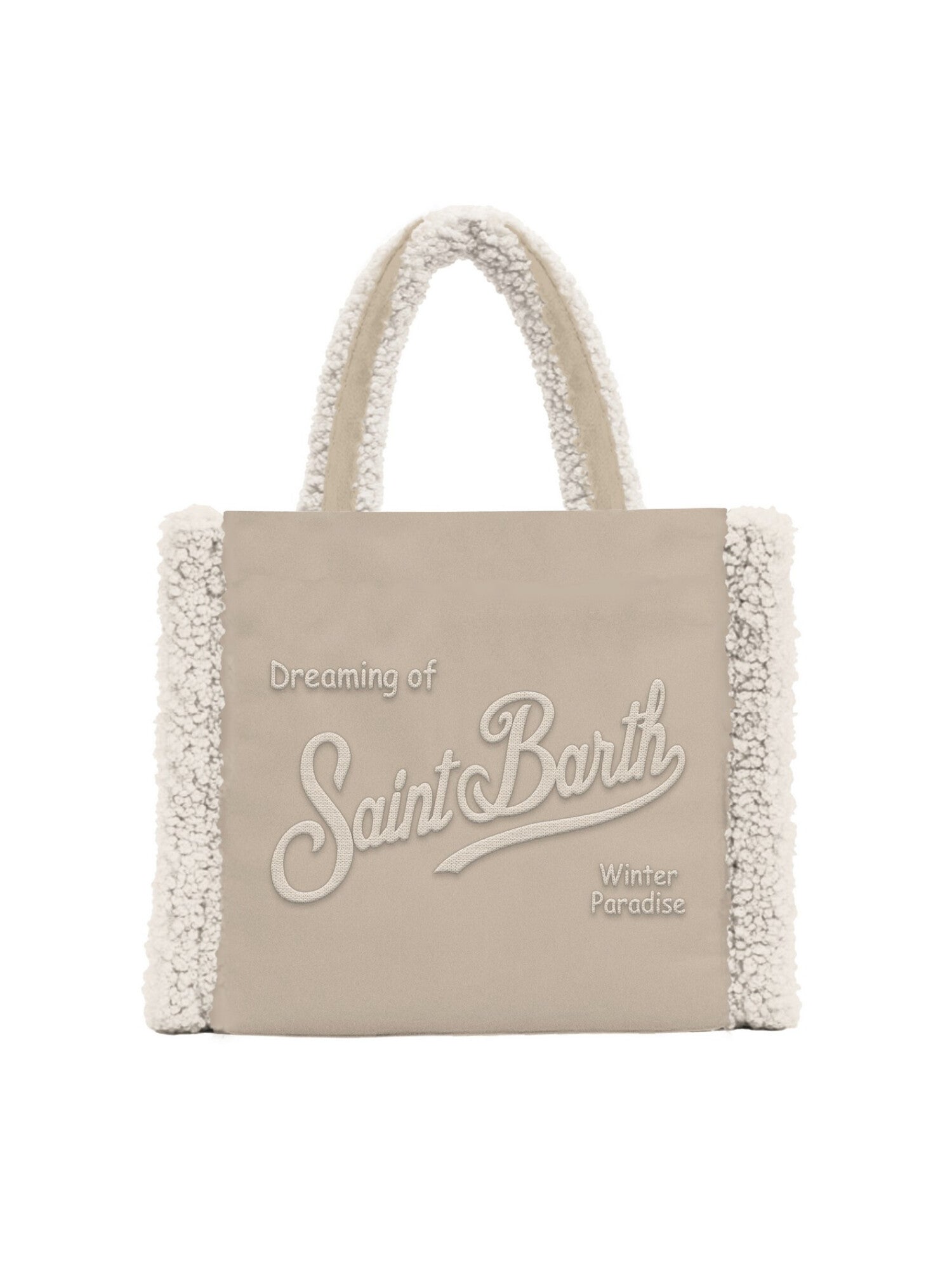 Borsa Vanity mini in tessuto shearling, tasca interna con zip e logo St. Barth ricamato. Chiusura con bottone a pressione. Tracolla regolabile rimovibile. Fodera in tessuto. Dimensioni: 20 x 18 x 8 cm. 100% Poliestere.