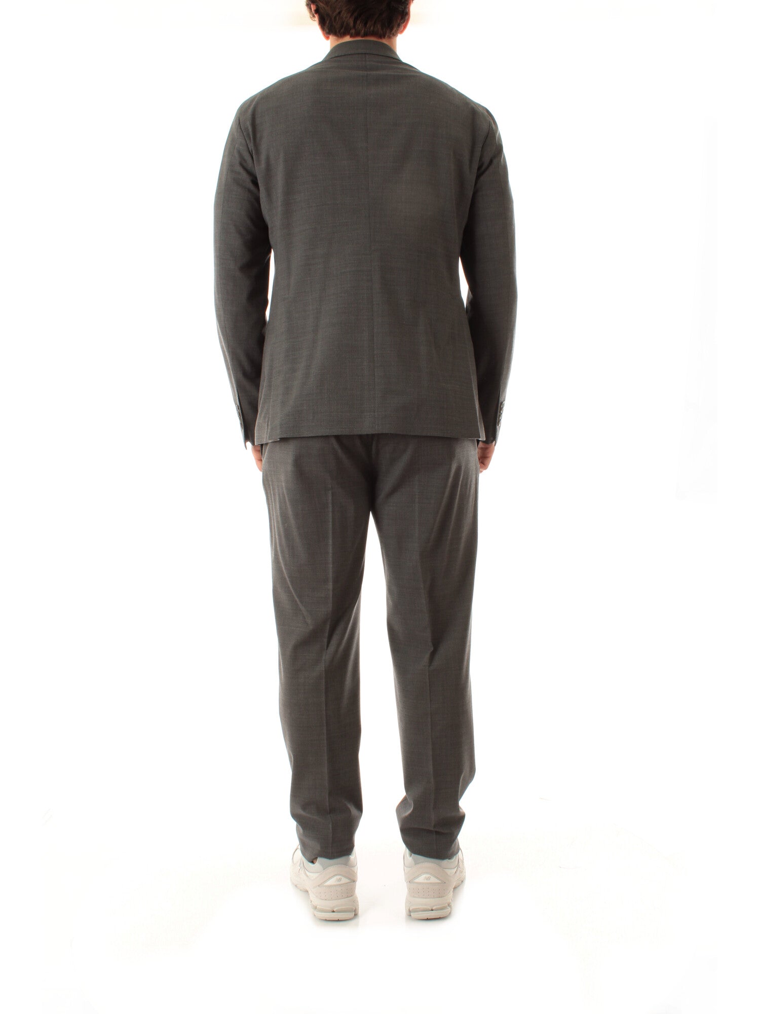 Abito doppiopetto con due tasche a toppa e una a filo, spacchi laterali, semi-foderato. Pantalone ventre piatto senza pince. Altezza modello: 185 cm. Taglia indossata: 50. 85% Lana Vergine, 12% Poliammide, 3% Elastan