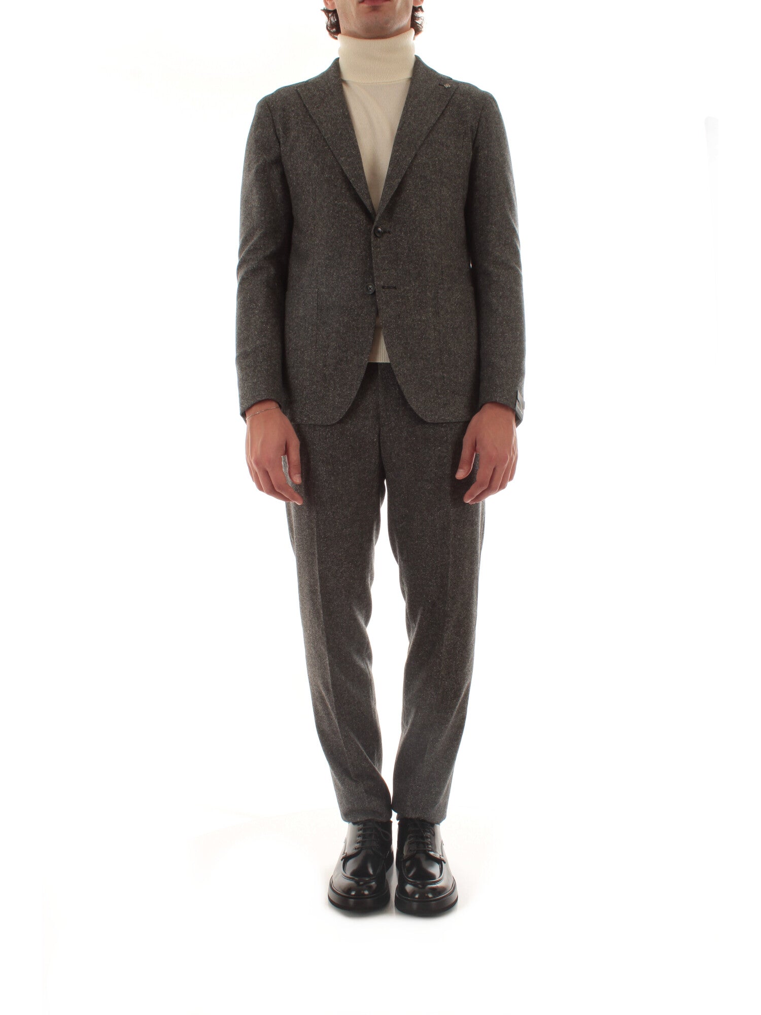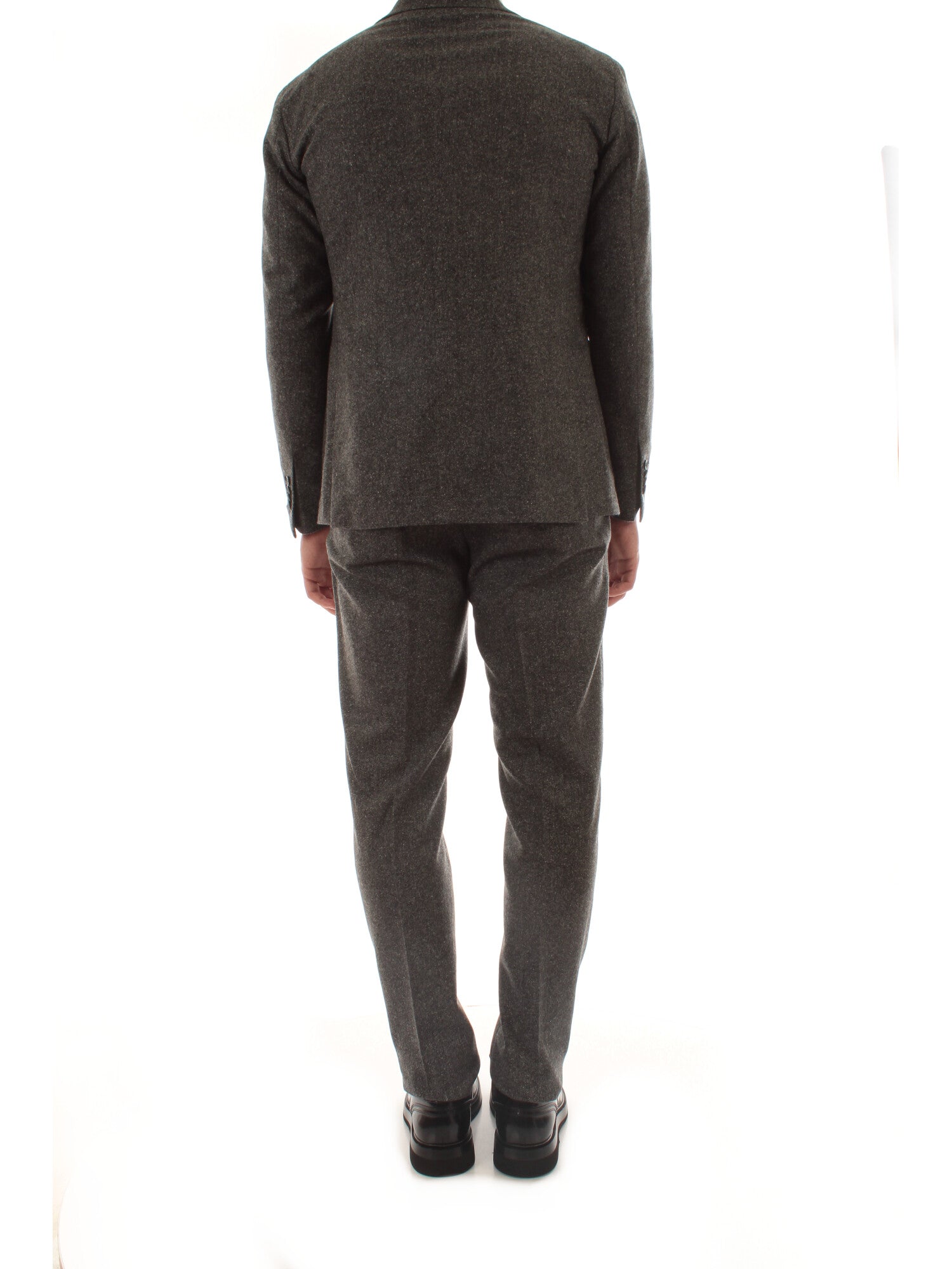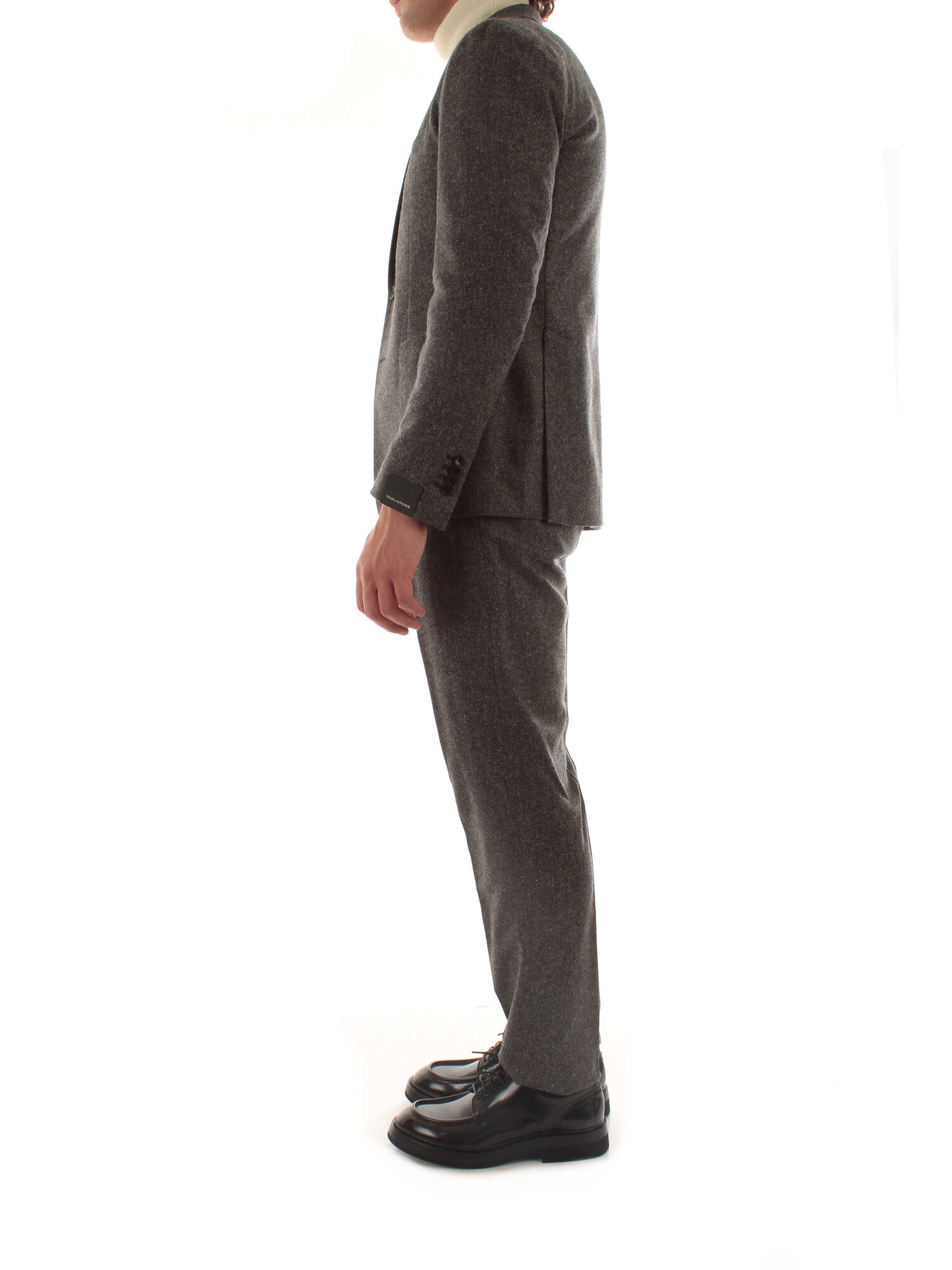 Abito monopetto in tessuto melange. Due tasche a toppa e una a filo. Spacchi laterali. Pantalone ventre piatto senza pence. Altezza modello: 185 cm. Taglia indossata: 50. 71% lana, 17% poliammide, 11% seta, 1% elastan